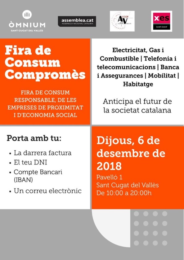El dijous 6 de desembre es farà a Sant Cugat una Fira de Consum Compromès per informar de les millors opcions per estalviar i fer un consum responsable.
