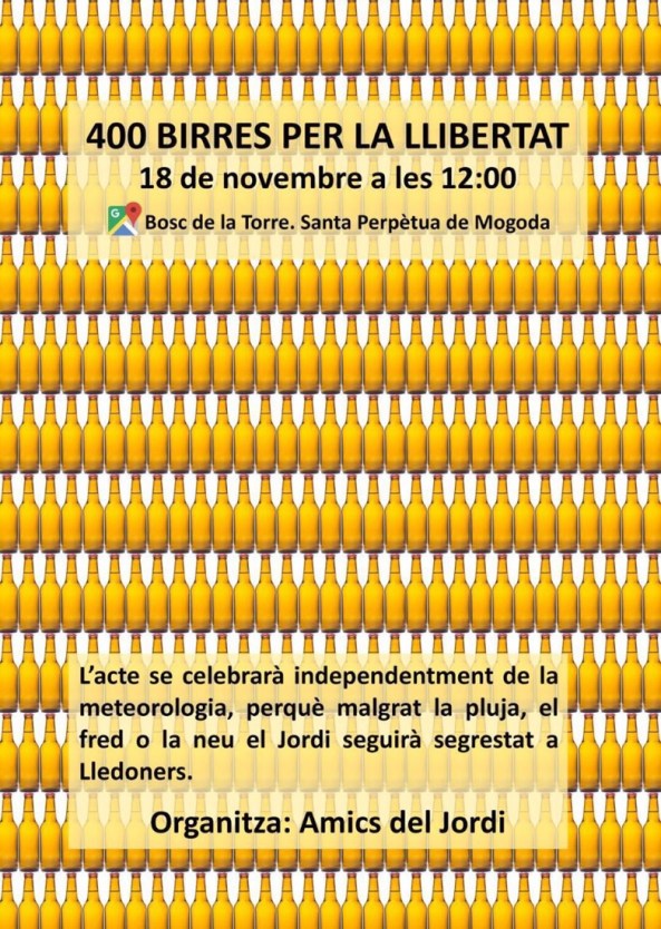 El diumenge 18 de novembre, a Santa Perpètua de Mogoda, s’ha organitzat al Bosc de la Torre l’acció “400 birres per la llibertat“.