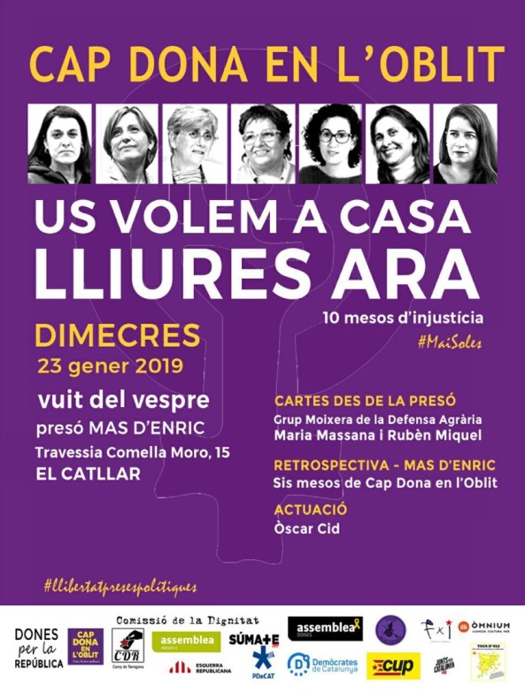Aquest dimecres 23 de gener, a El Catllar, a la presó de Mas d’Enric es farà una nova concentració per donar tot el suport a les dones en presó o a l’exili.