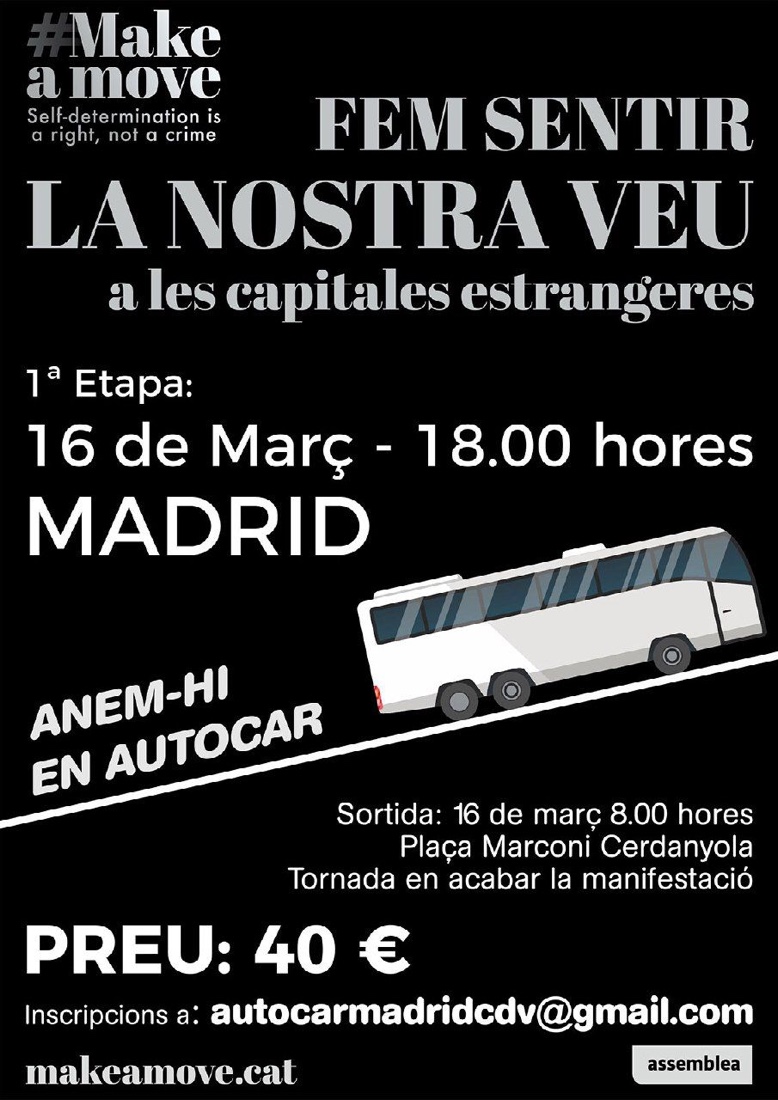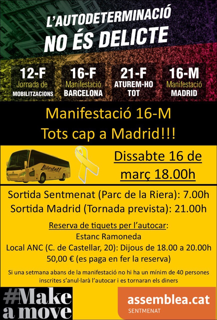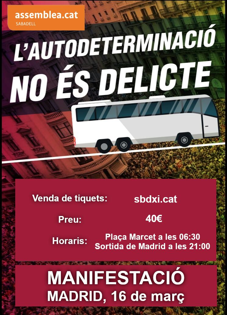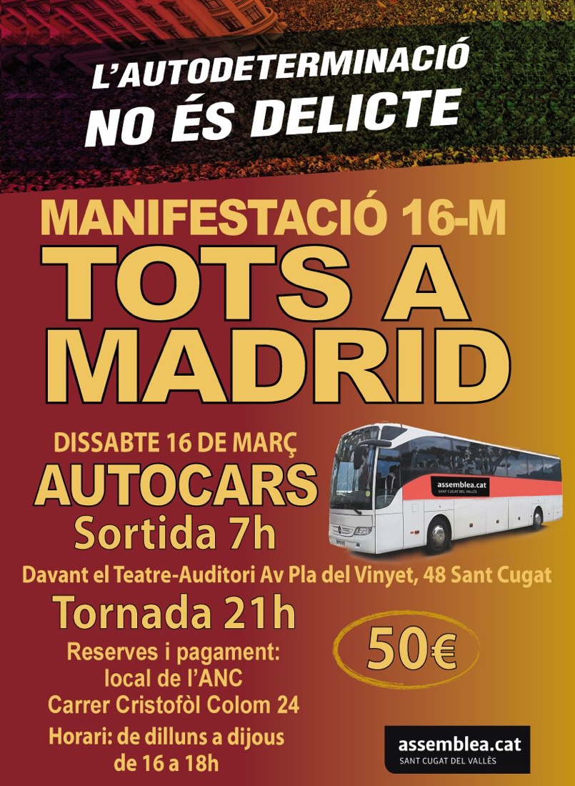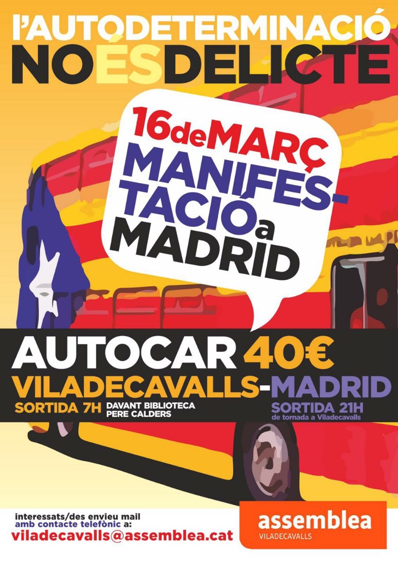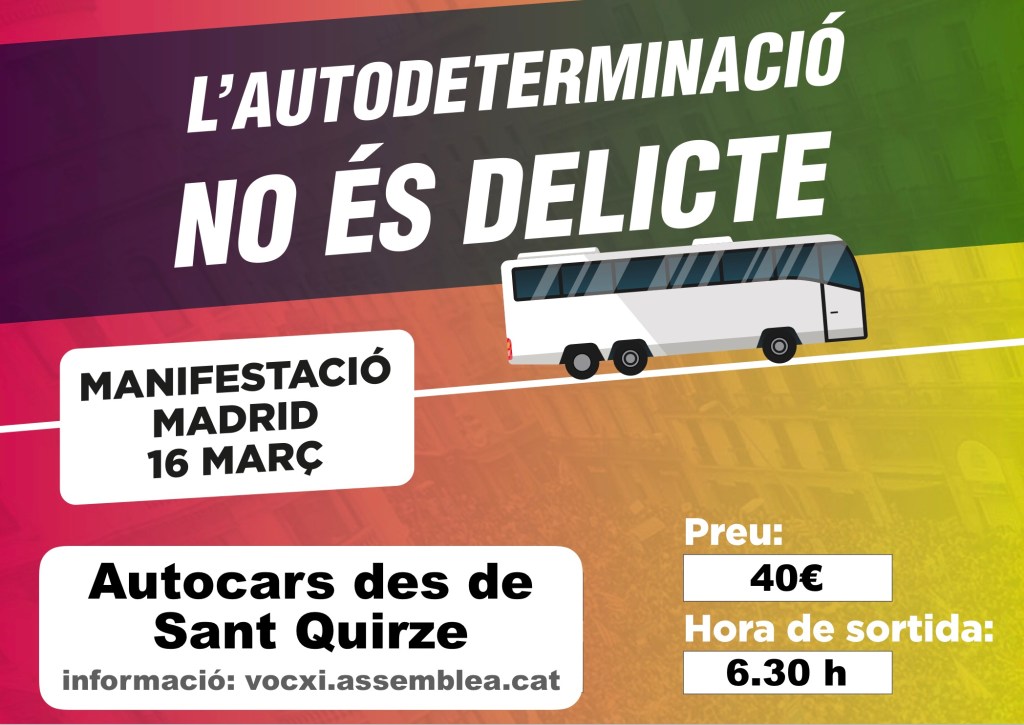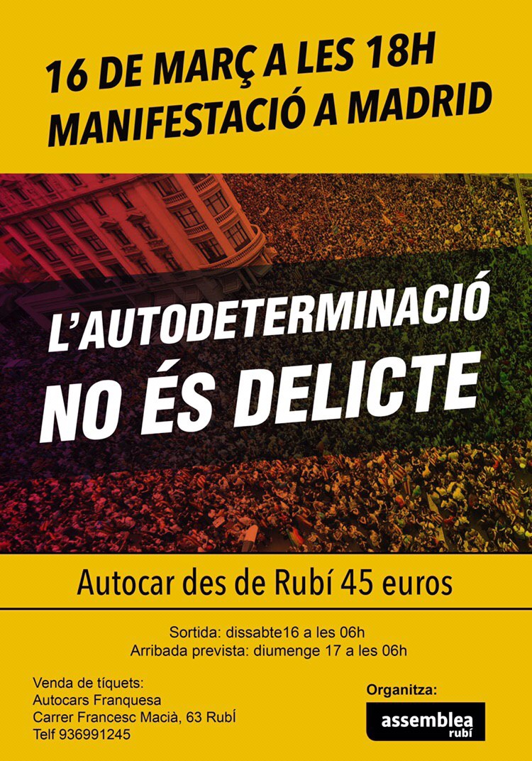 El 16 de març s’ha organitzat una manifestació a Madrid per dir, al cor de l’estat, que l’autodeterminació és un dret i no un delicte.