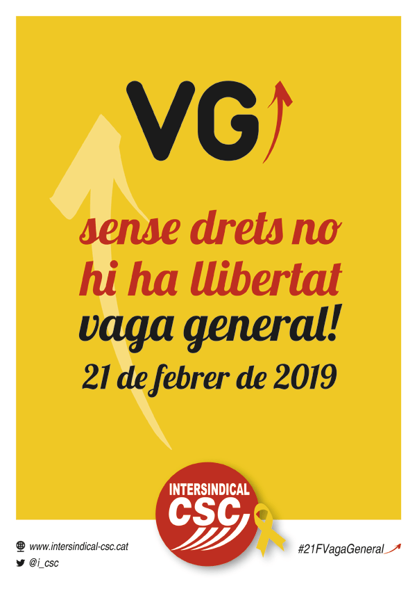 Volen que seguim agenollats i claudicants com a classe i paralitzats i servils com a poble, però no els donarem aquest gust! Ens mantindrem tossudament alçats per construir el nostre futur com a classe treballadora digne en una Catalunya en la qual totes i tots assumim que, sense drets, no hi ha llibertat!