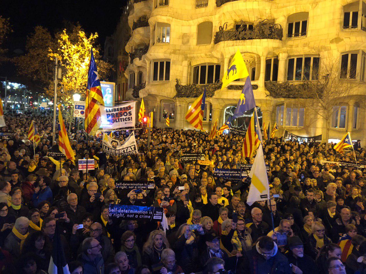Acció sorpresa de l’Assemblea aquesta tarda. Mentre que estava prevista una mobilització a Jardinets de Gràcia, l’Assemblea ha comunicat, una estona abans, que la mobilització canviava de lloc. Així, milers de persones s’han desplaçat fins al davant de la seu de la Comissió Europea a Barcelona. Allà, membres de l’entitat han fet lliurament d’un document, dirigit a Jean Claude Juncker, president de la Comissió Europea, i Ferran Tarradellas, cap de la representació de la Comissió Europea a Barcelona, en què es denuncien les constants vulneracions de drets perpetrades per l’Estat espanyol.