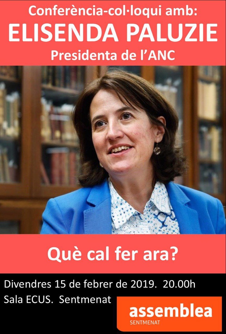 El divendres 15 de febrer, a Sentmenat, la presidenta de l’ANC Elisenda Paluzie farà una conferència-col·loqui sobre la situació política actual.