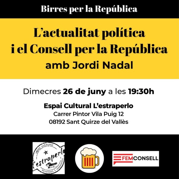 El dimecres 26 de juny, a Sant Quirze del Vallès, es farà una tertúlia sobre el moment polític i el Consell per la República amb la participació de Jordi Nadal.