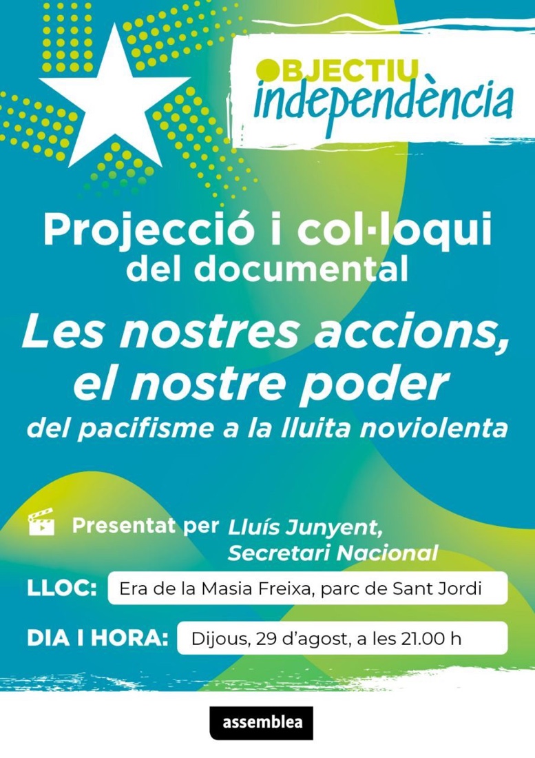 El dijous 29 d’agost, a Terrassa, es projectarà el documental “Les nostres accions, el nostre poder” i es farà un debat a continuació.