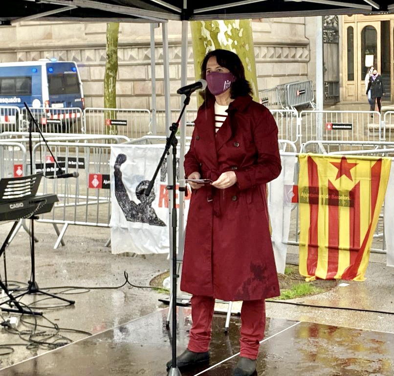 Avui la presidenta de l’Assemblea, Elisenda Paluzie, ha participat en la concentració en suport al represaliat Marcel Vivet. La Fiscalia i la Generalitat li demanem cinc anys i mig de presó per haver participat en una manifestació l’any 2018 contra el sindicat de la policia espanyola Jusapol.