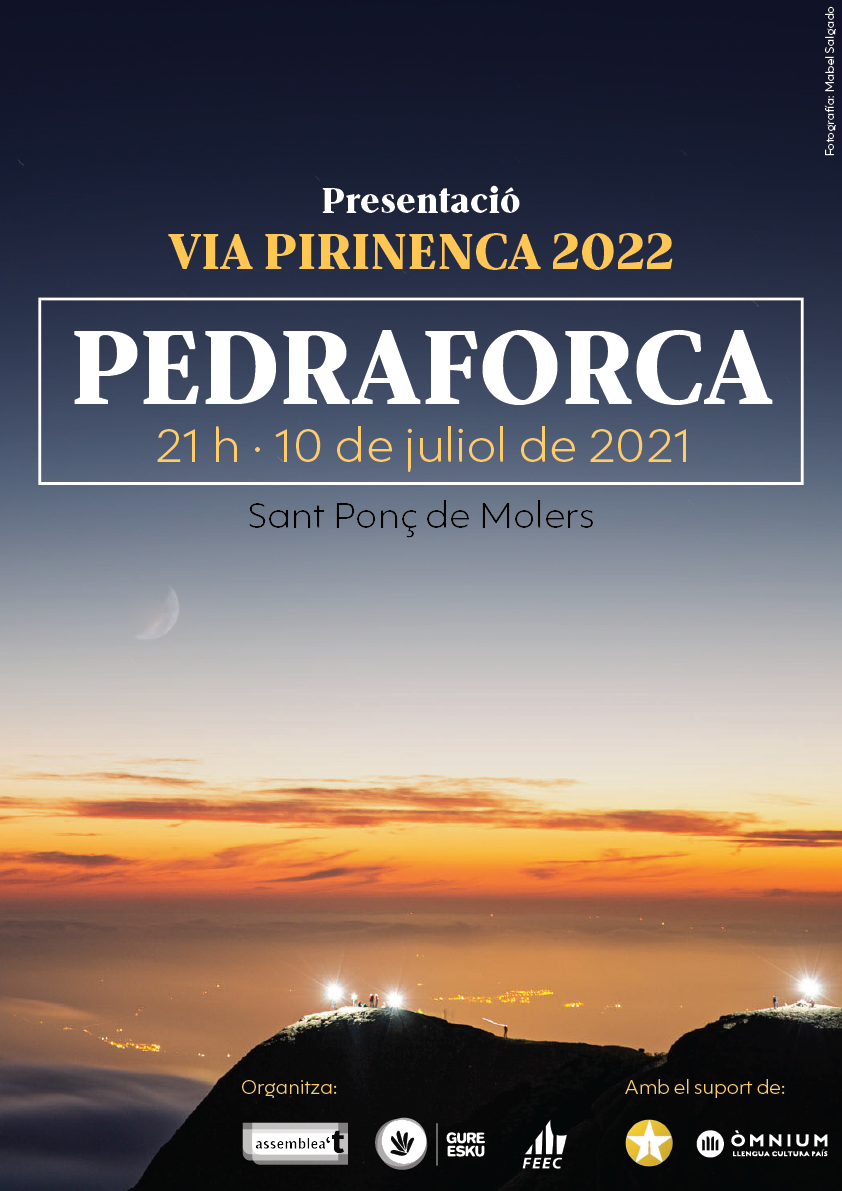 L’acte es farà al llogarret de Sant Ponç de Molers i començarà a les 21 h. Un cop acabi es farà l’acció al Pedraforca, que es podrà seguir des d’aquest mateix prat.