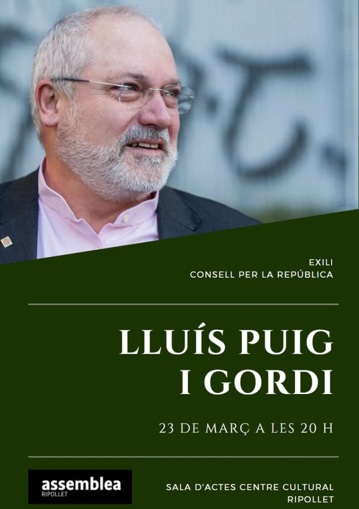El dimecres 23 de març, a Ripollet, es farà un acte amb Lluís Puig, l’exconseller de Cultura a l’exili, sobre la seva situació, el paper dels exiliats i el Consell per la República.