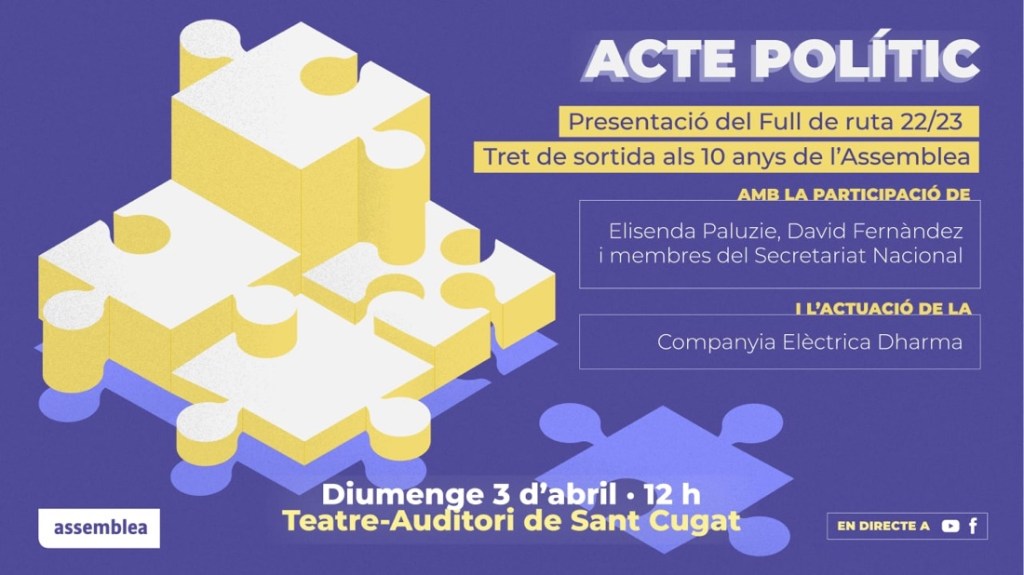 El diumenge 3 d’abril, a Sant Cugat del Vallès, es farà l’Acte Polític de l’Assemblea General Ordi que coincidirà amb l’inici dels actes commemoratius del 10è aniversari Assemblea.