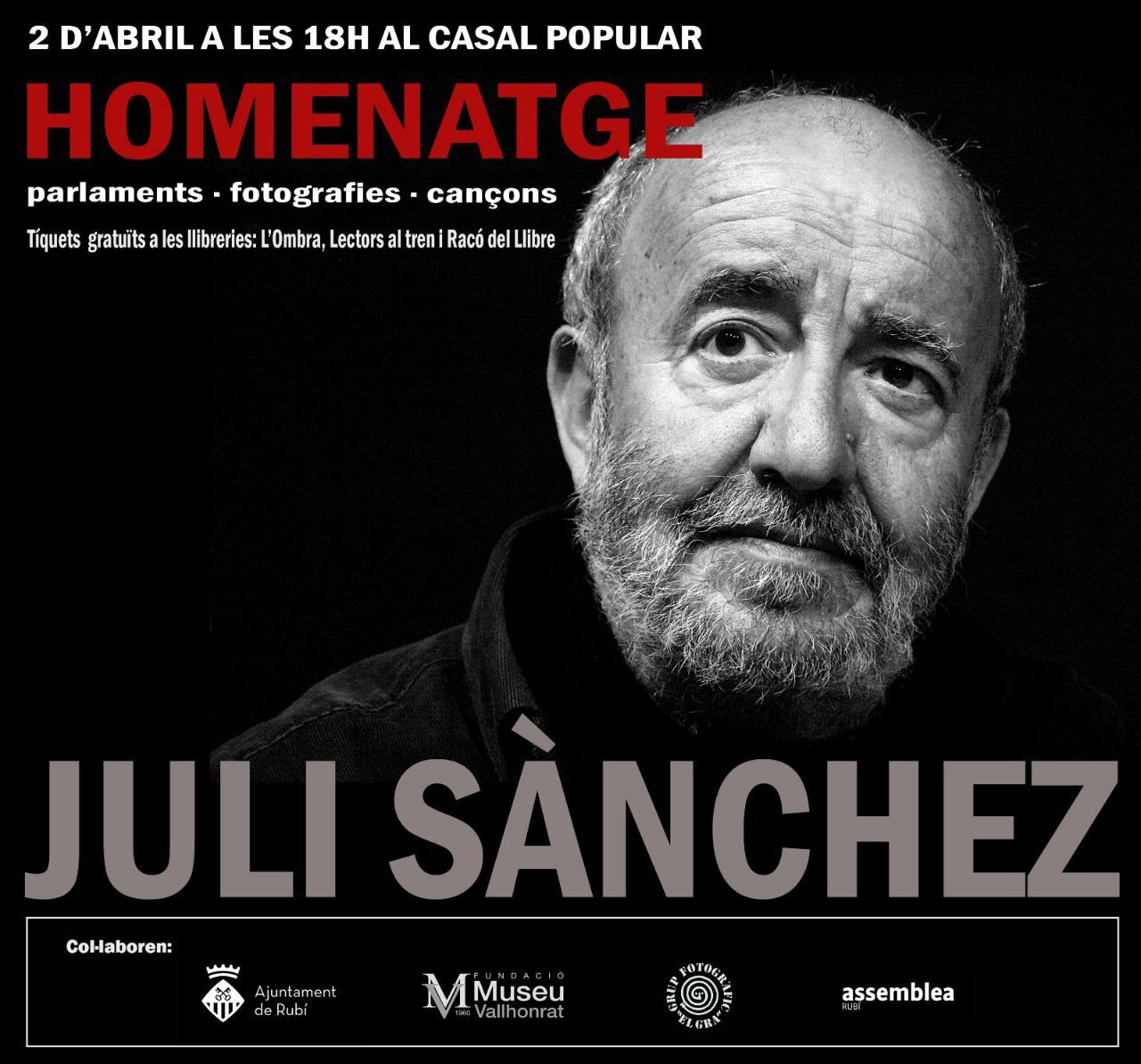 EL 2 d’abril, a Rubí, es farà un acte d’homenatge a Juli Sànchez, que havia estat al Secretariat de l’Assemblea Nacional Catalana a Rubí. Era una persona molt coneguda per la seva implicació a la ciutat en entitats culturals, veïnals i solidàries.