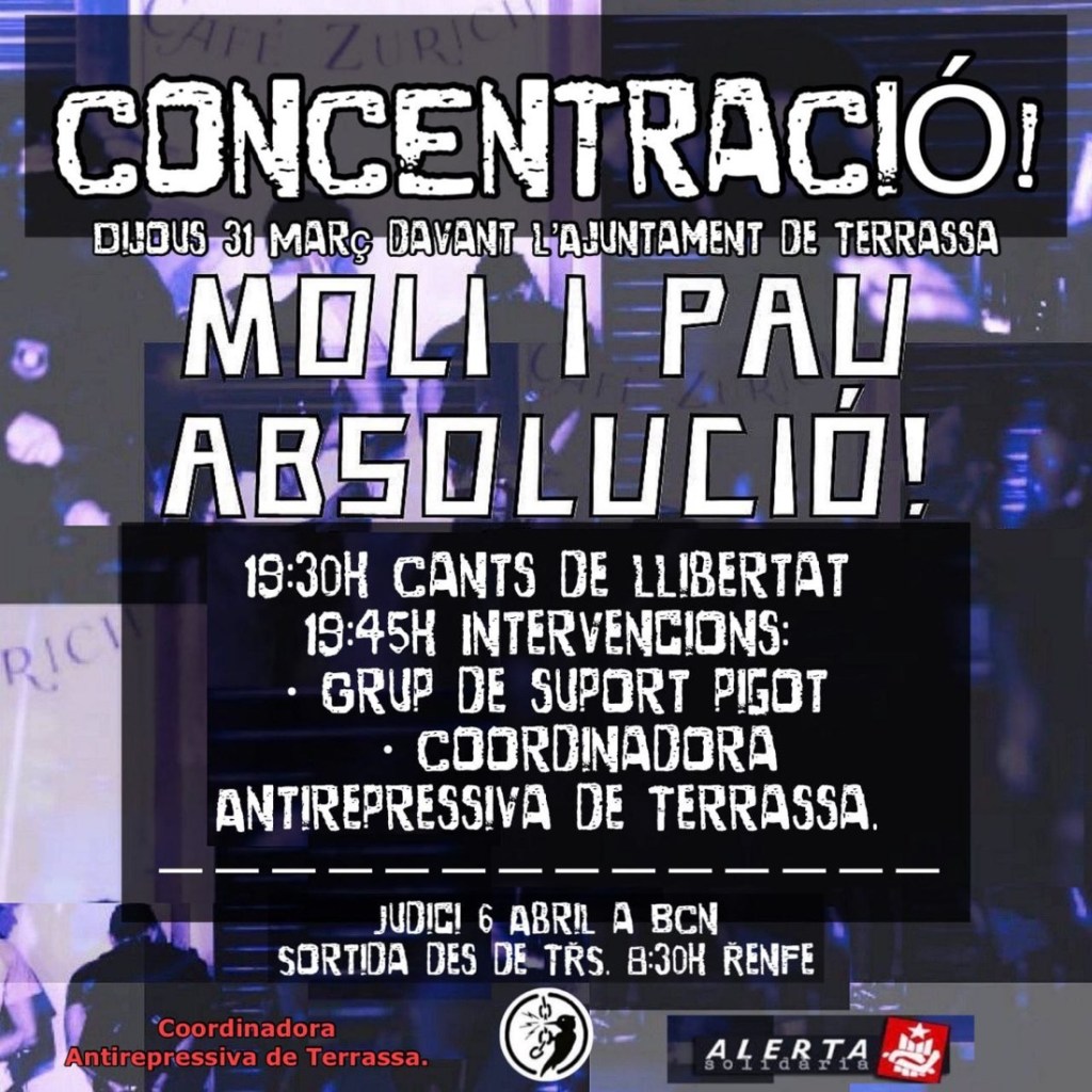 Solidaritat amb en Pau de Terrassa i en Moli de Calldetenes!