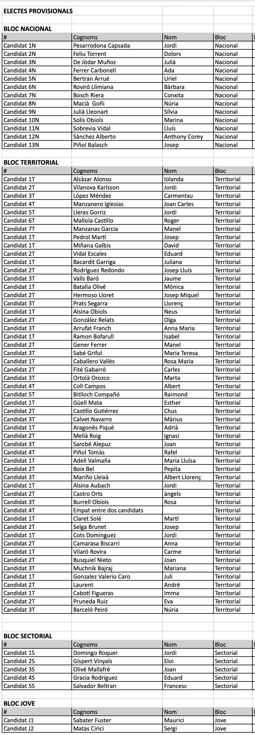 Cal recordar que totes les secretàries i secretaris, sigui quin sigui el bloc on s’han presentat (nacional, territorial, sectorial o jove), poden optar als càrrecs orgànics de l’entitat, més enllà dels vots que hagin obtingut cada un en aquestes eleccions.