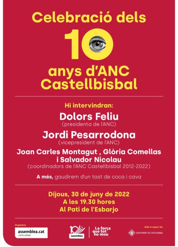 El dijous 30 de juny, a Castellbisbal, es farà l’acte de celebració dels 10 anys de l’Assemblea Nacional Catalana.