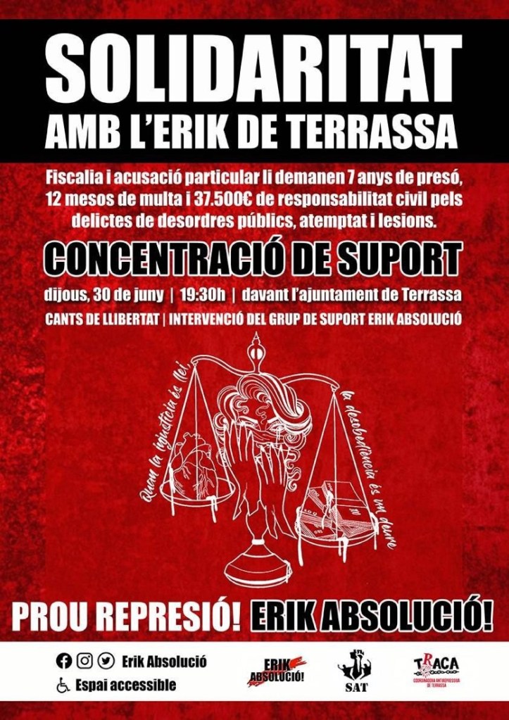 30 de juny, a Terrassa, concentració en suport a l’Erik