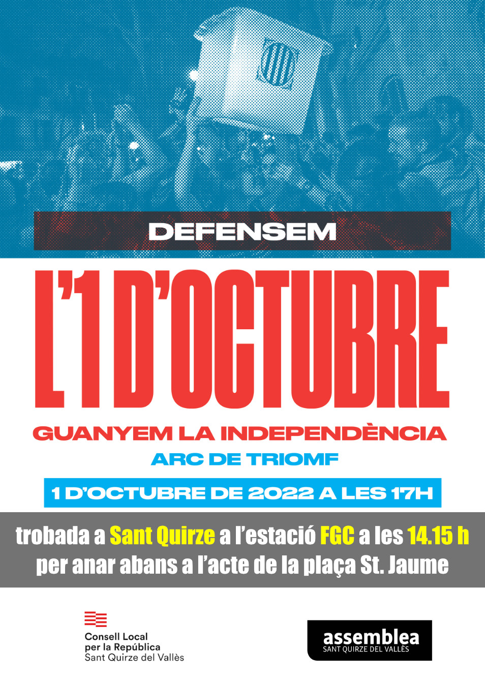 L’1 d’octubre ens trobarem a les 14.15 h a l’estació dels FGC per anar a la plaça Sant Jaume i posteriorment a l’Arc del Triomf.