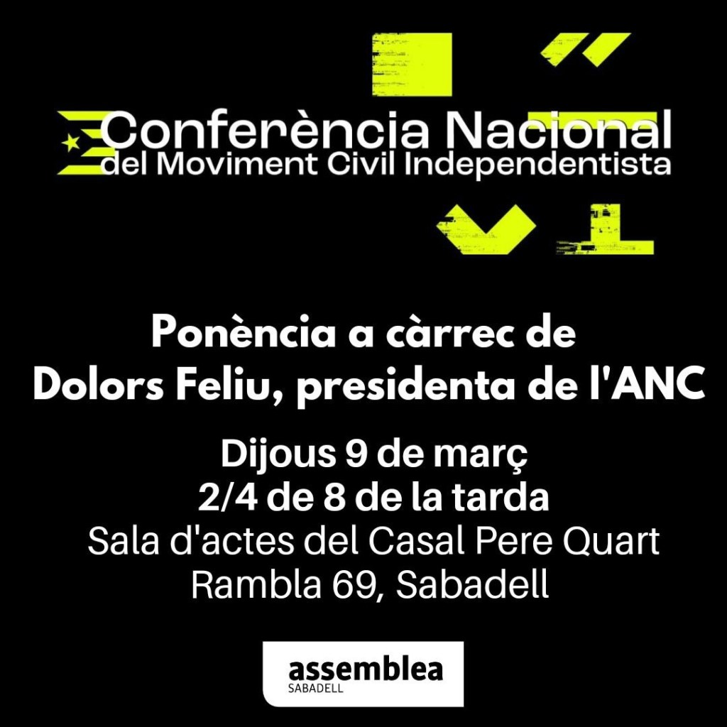 Sabadell acollirà una xerrada per presentar la Conferència Nacional del Moviment Civil Independentista el proper dijous 9 de març.