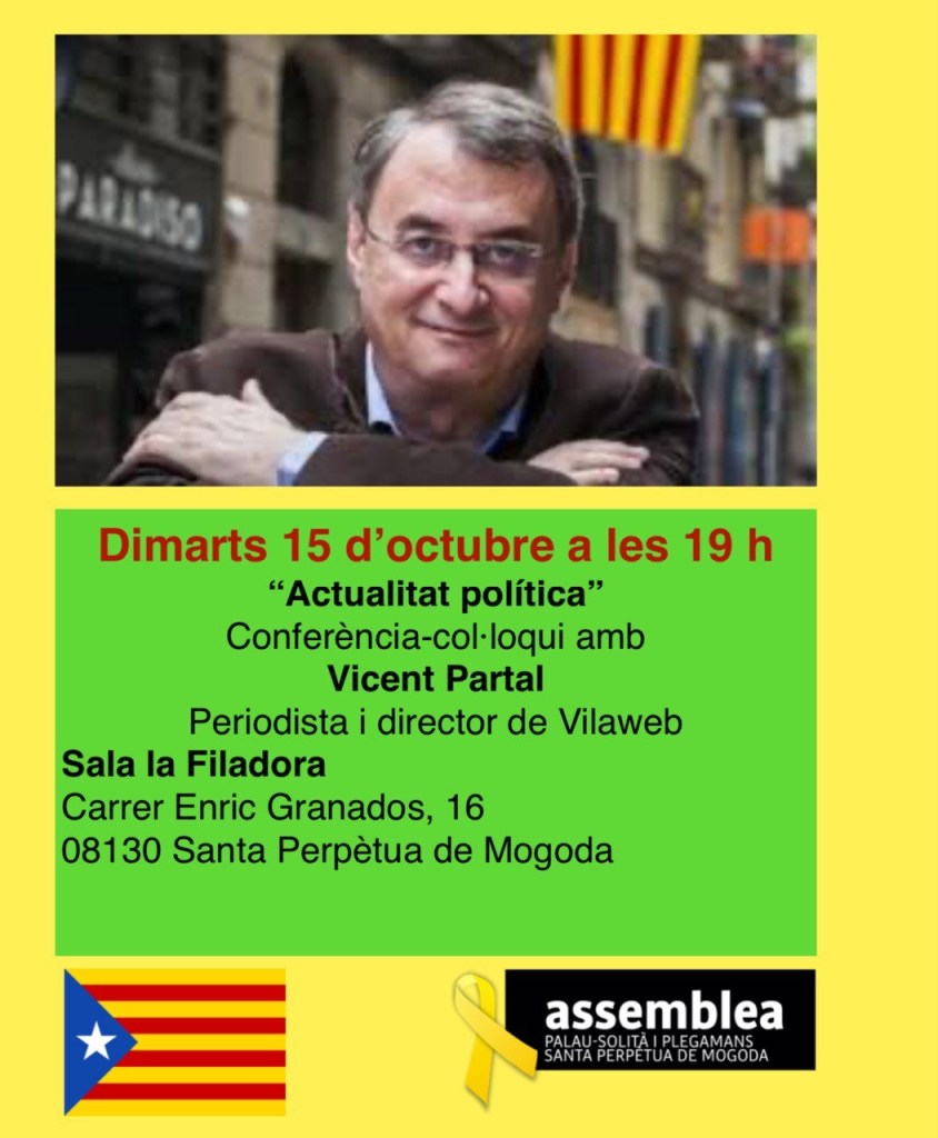 El dimarts 15 d’octubre, a Santa Perpètua de Mogoda, es farà una conferència sobre l’actualitat política amb Vicent Partal, director de Vilaweb.
