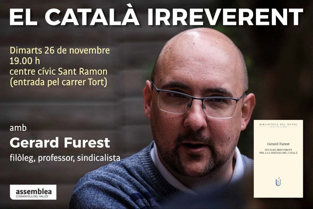 El dimarts 26 de novembre, a Cerdanyola del Vallès, es farà un acte titulat “El català irreverent“ amb Gerard Furest.