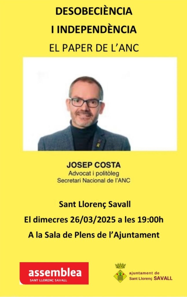 El dimecres 26 de març a Sant Llorenç Savall, Josep Costa farà una xerrada sobre Desobediència i independència.