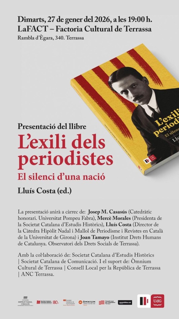El dimarts 27 de gener, a Terrassa, es farà la presentació del llibre ‘L’exili dels periodistes‘.