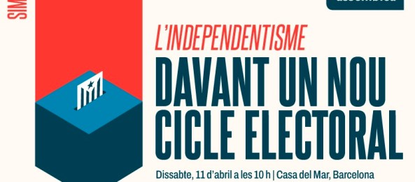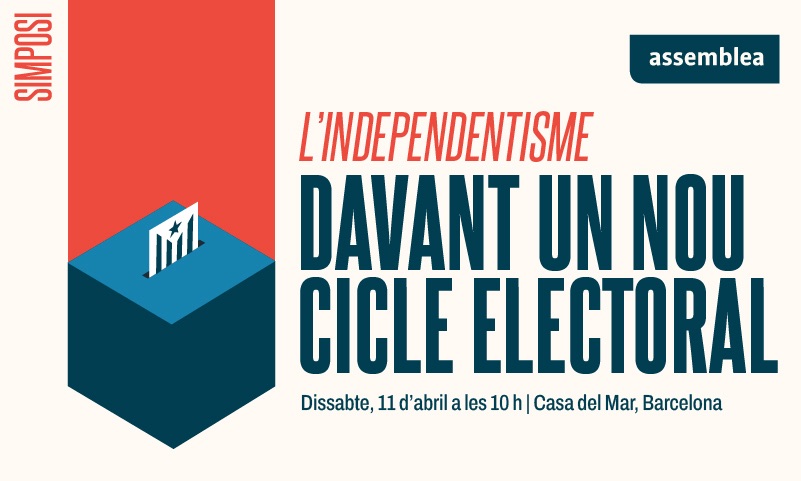 L’Assemblea Nacional Catalana organitza el simposi L’independentisme davant un nou cicle electoral, que celebrarem el dissabte 11 d’abril, a l’Auditori de la Casa del Mar de Barcelona (carrer Albareda, 1-13), de 10 a 13:45 h.