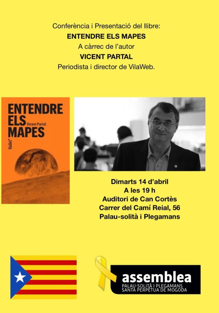 • 14 abril, a Palau-solità i Plegamans, presentació del llibre ‘Entendre els mapes’ amb Vicent Partal