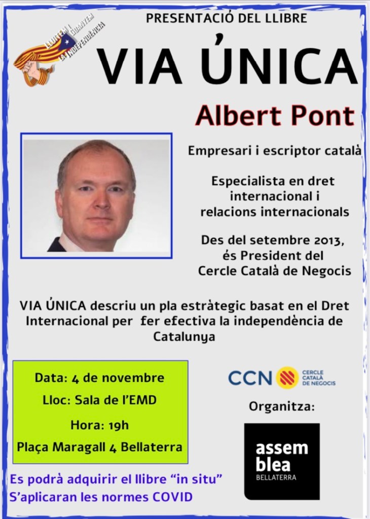 El dijous 4 de novembre, a Bellaterra, es presentarà el llibre Via única amb el seu autor, Albert Pont, president del Cercle Català de Negocis.
