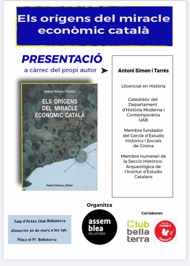 Avui 30 de març, a Bellaterra, es farà la conferència “Els orígens del miracle econòmic català“ s càrrec del catedràtic Antoni Simon.