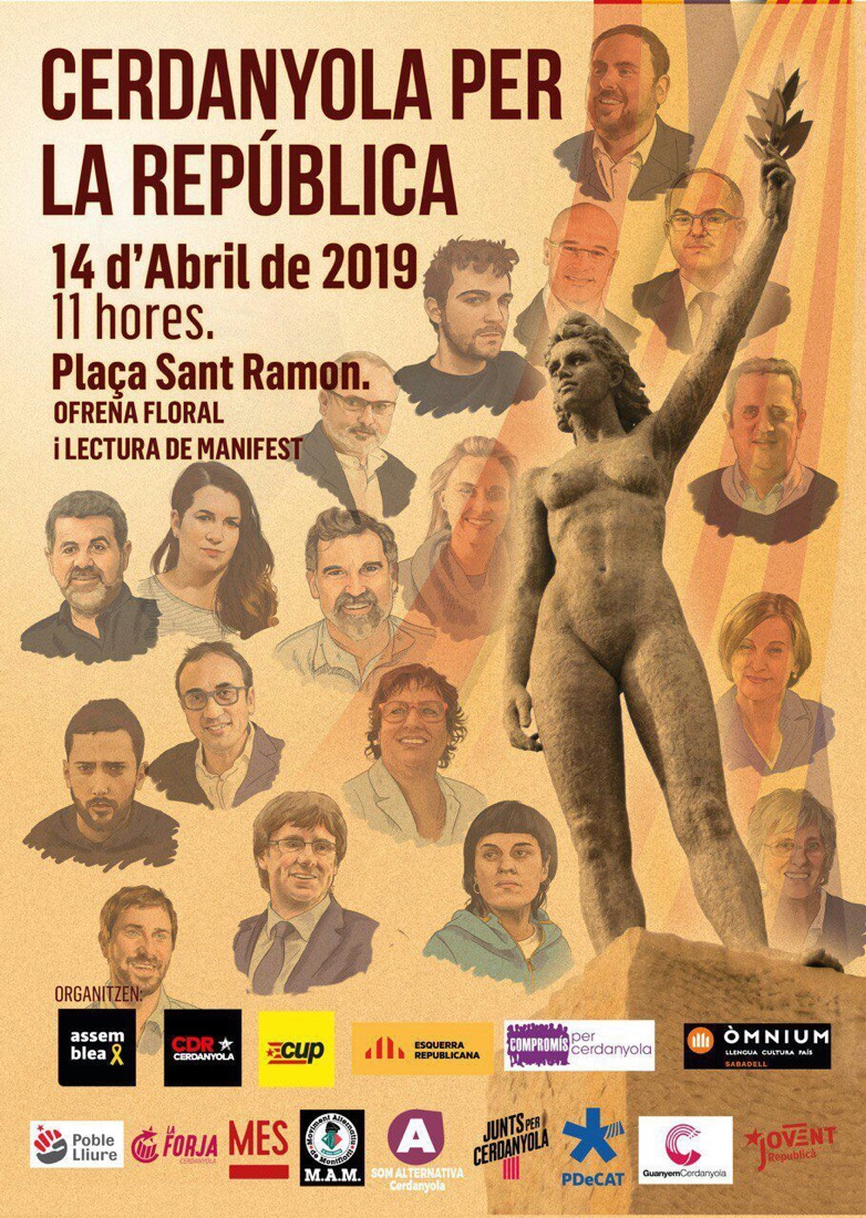 El 14 d’abril, a Cerdanyola del Vallès, es farà una commemoració i reivindicació de la República Catalana a la plaça Sant Ramon.
