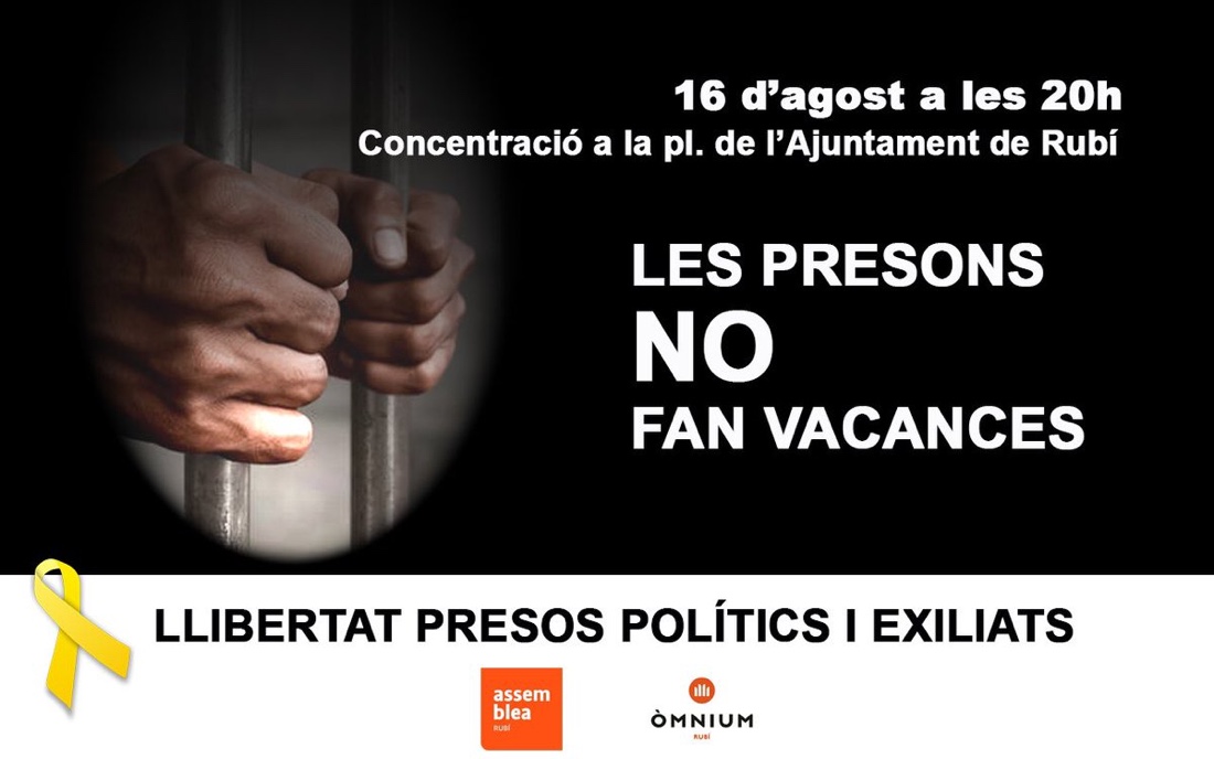 Divendres 16 d’agost, a Rubí, concentració “Les presons no fan vacances” per la llibertat de presos i exiliats.