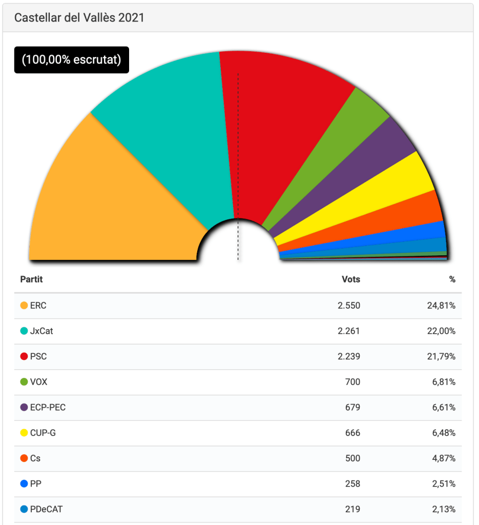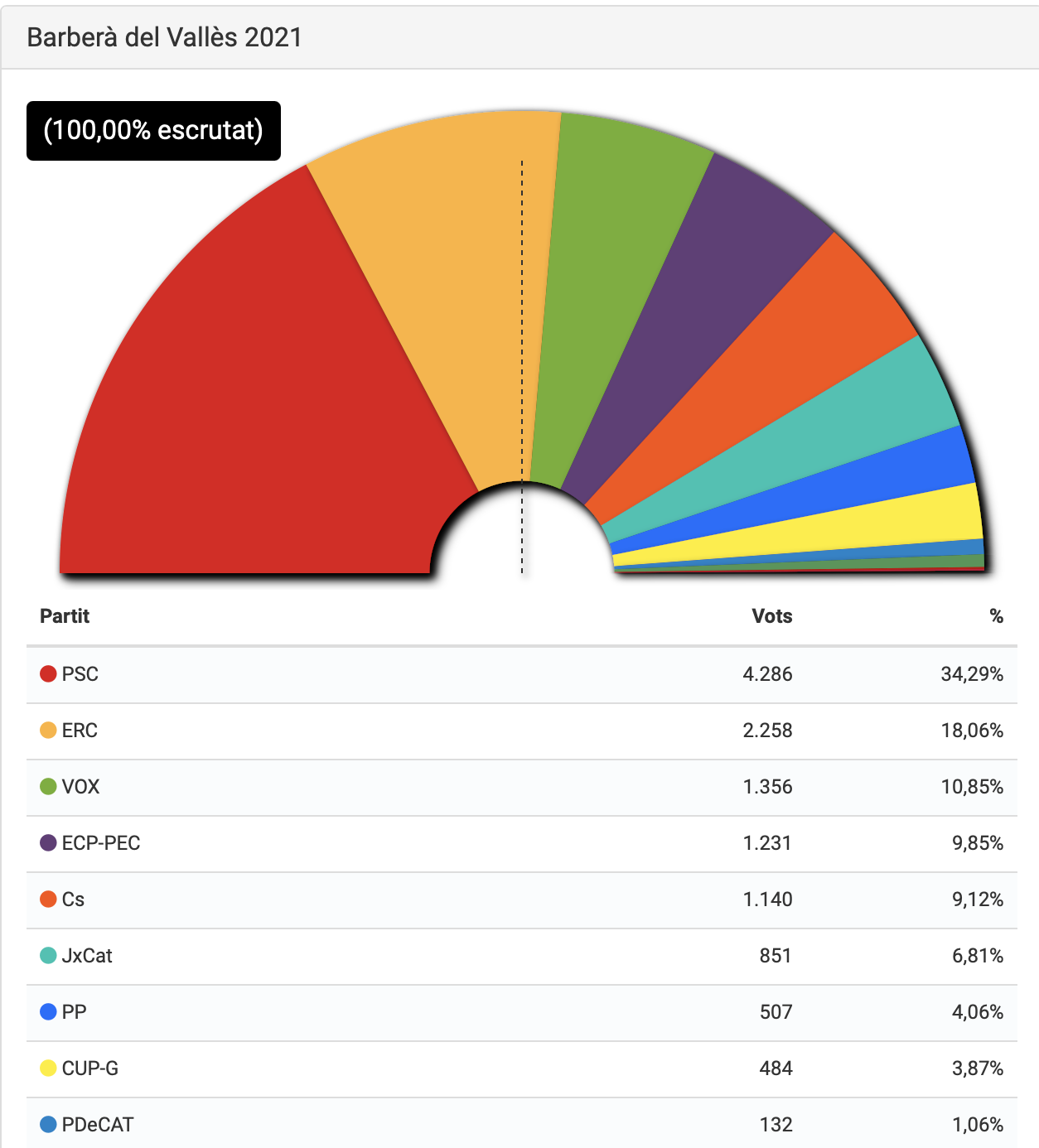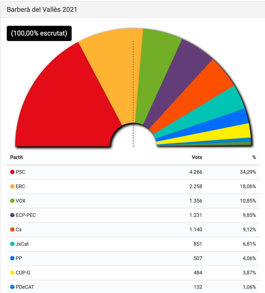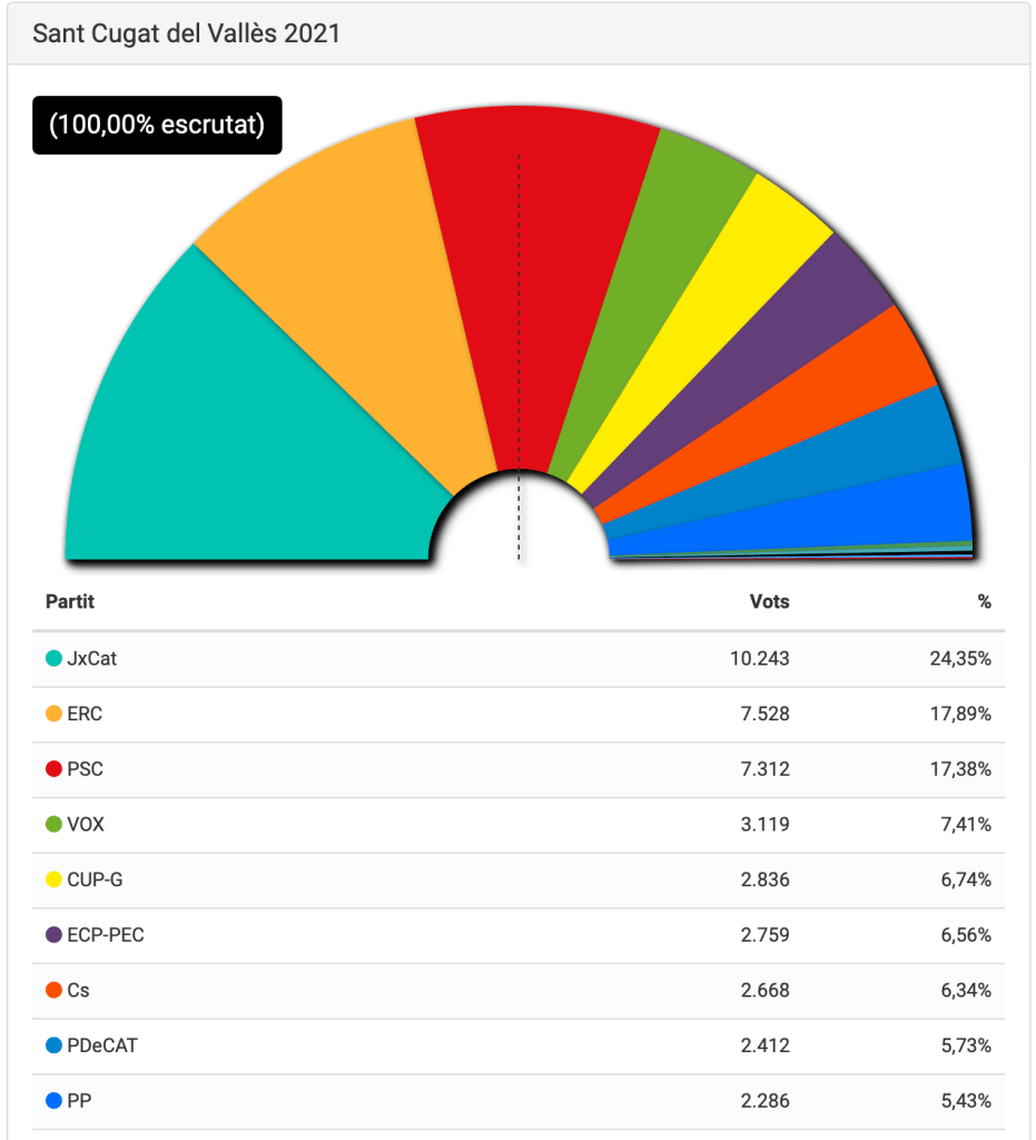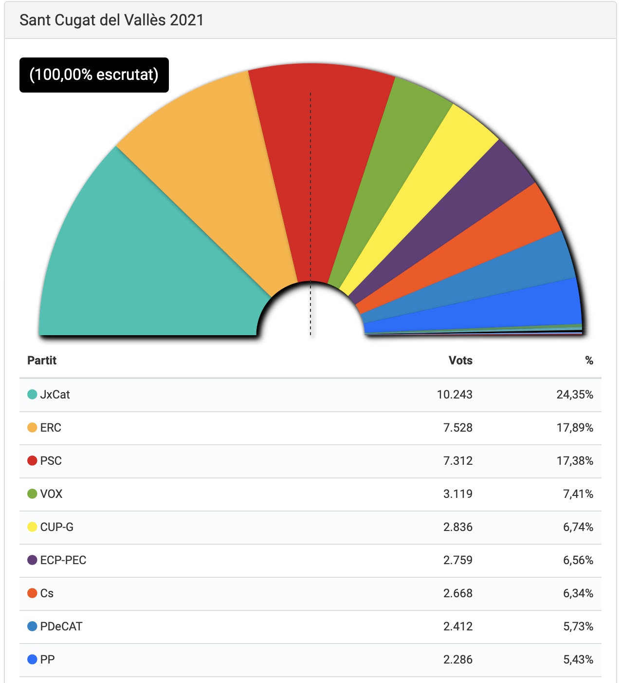 Aquest és el percentatge de vot a les diferents candidatures, a les eleccions del 14F de 2021 al Parlament de Catalunya, als municipis del Vallès Occidental.