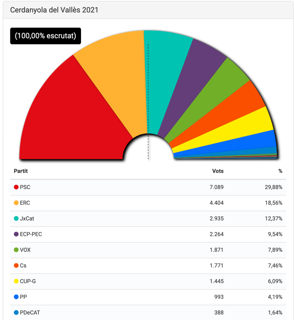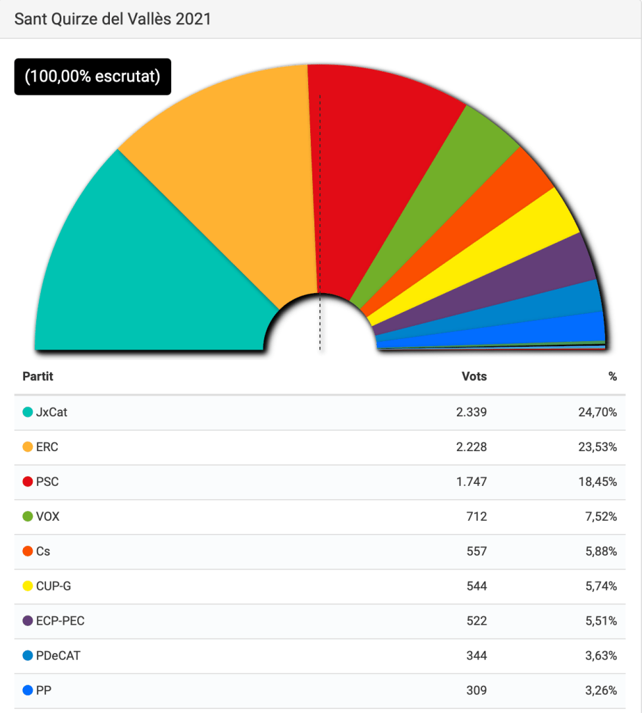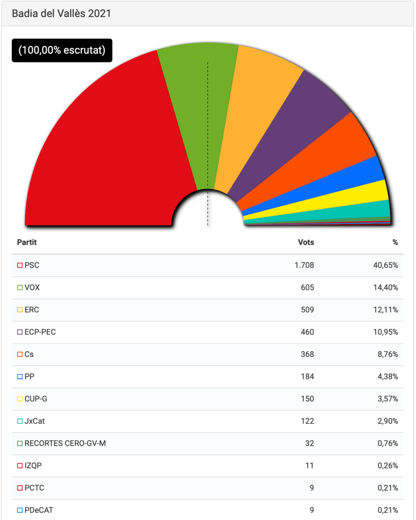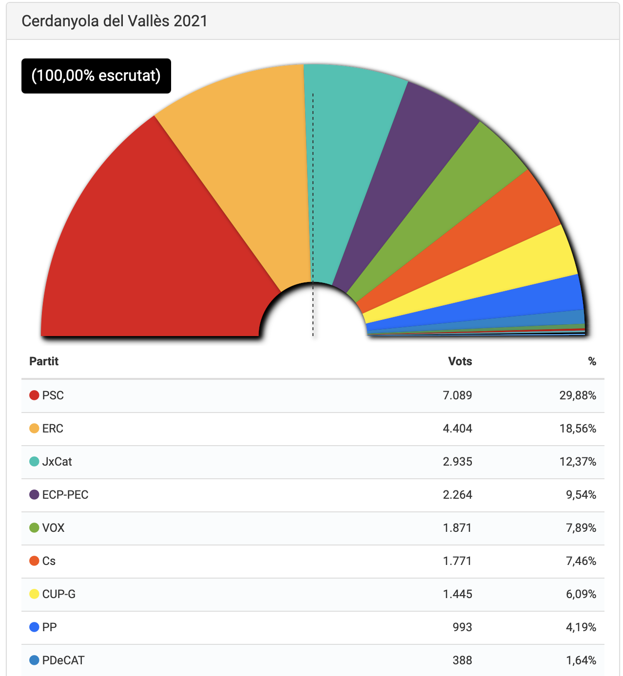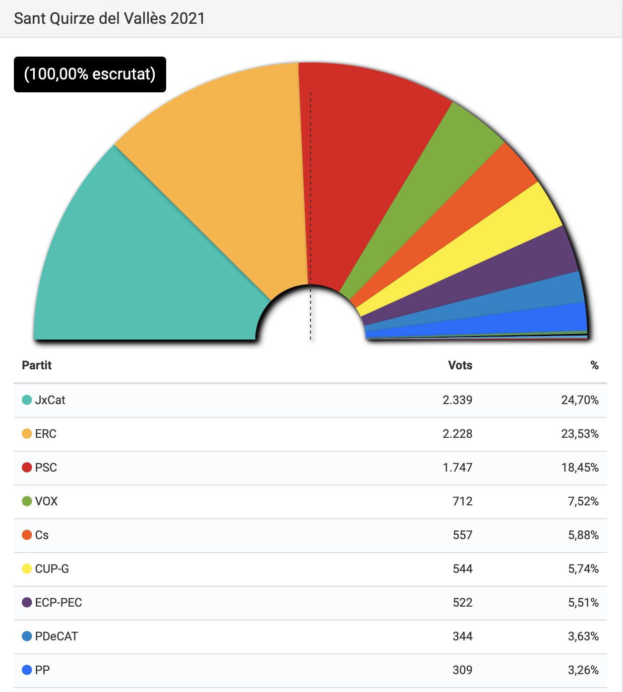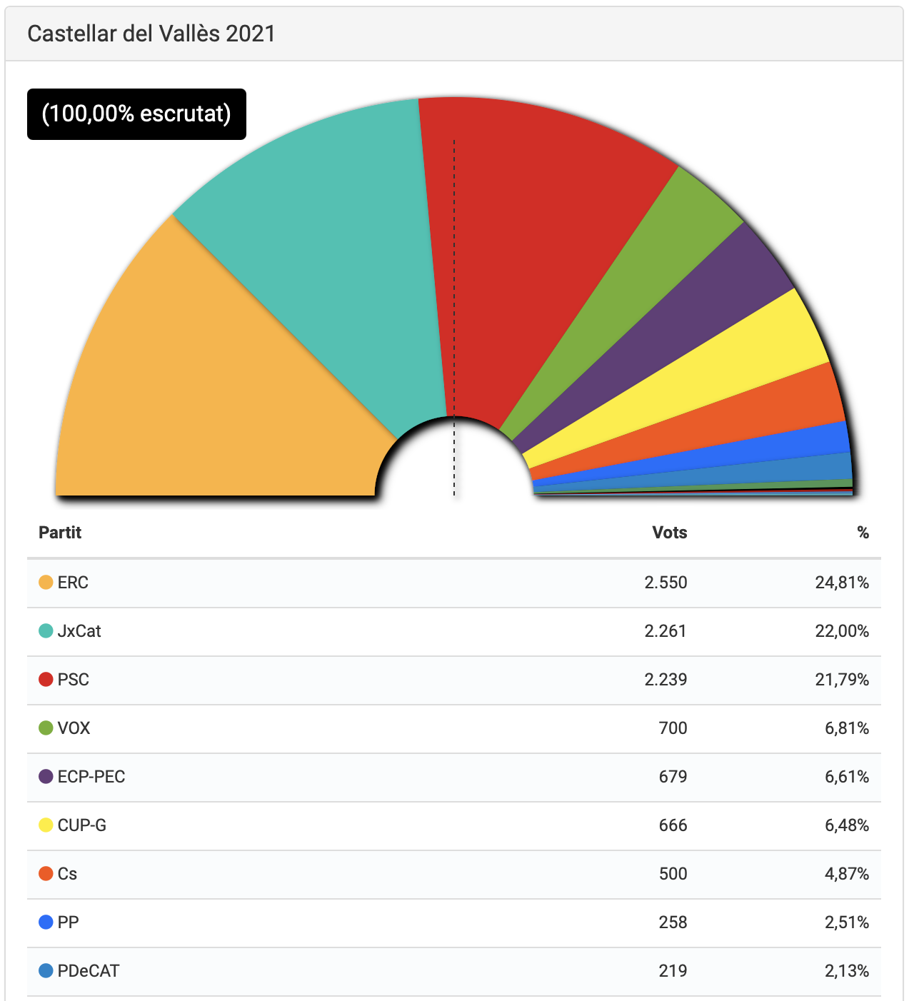 Aquest és el percentatge de vot a les diferents candidatures, a les eleccions del 14F de 2021 al Parlament de Catalunya, als municipis del Vallès Occidental.