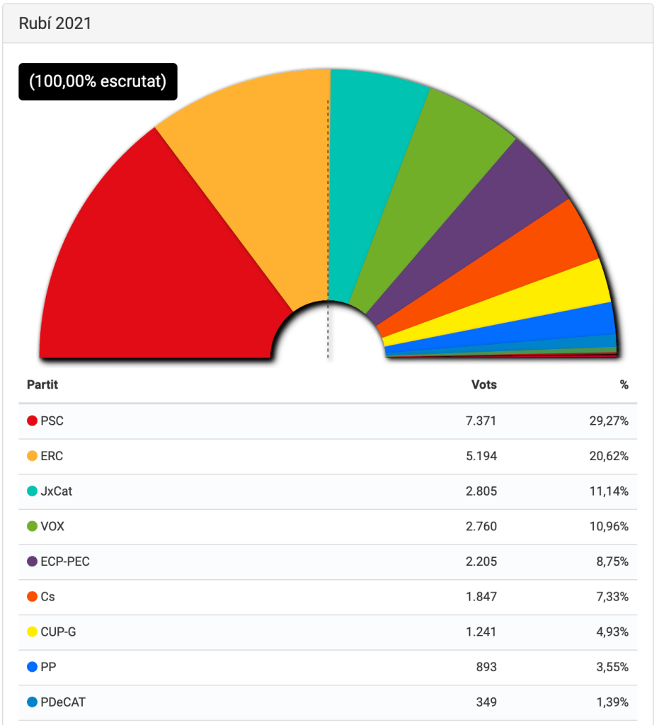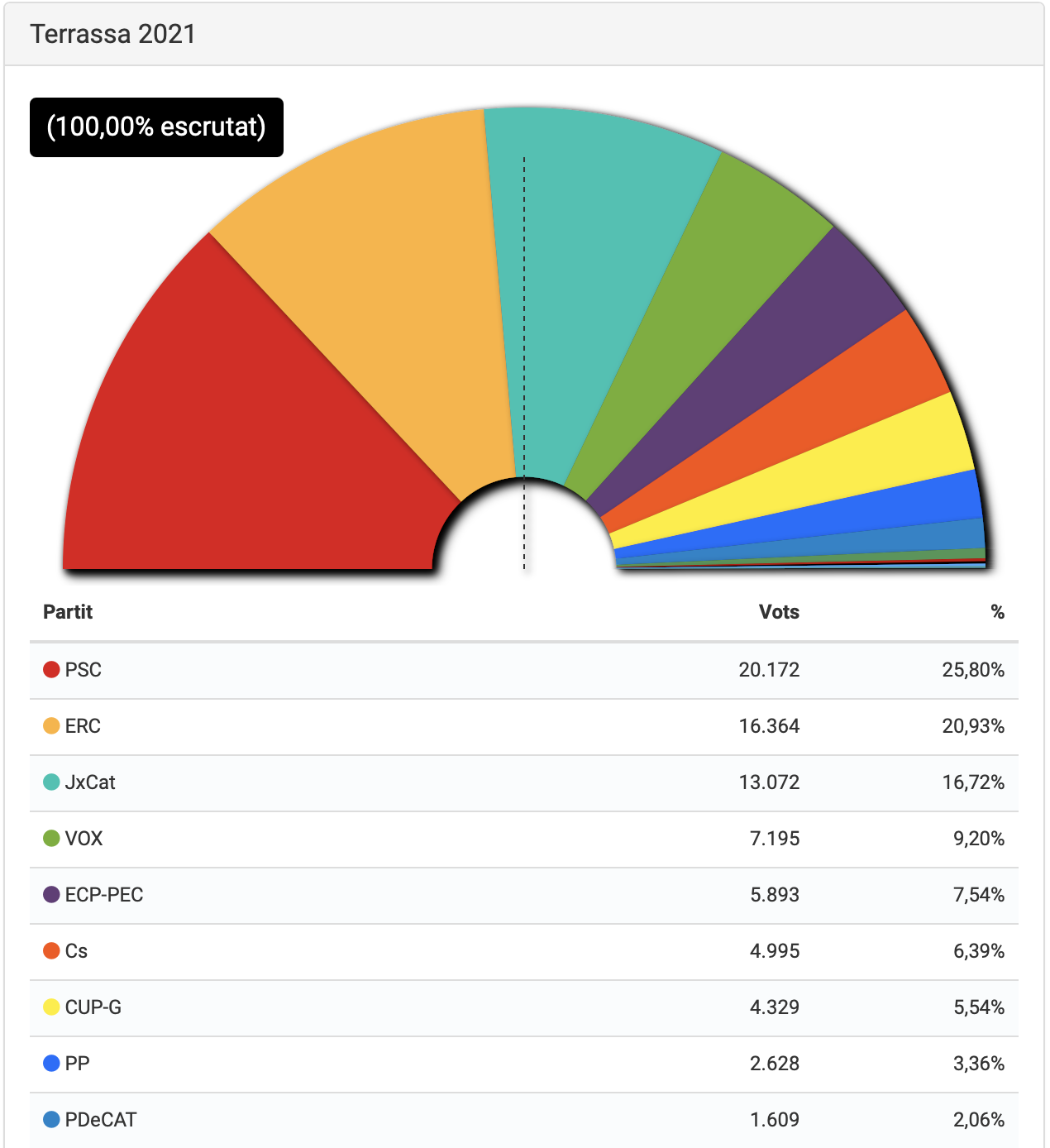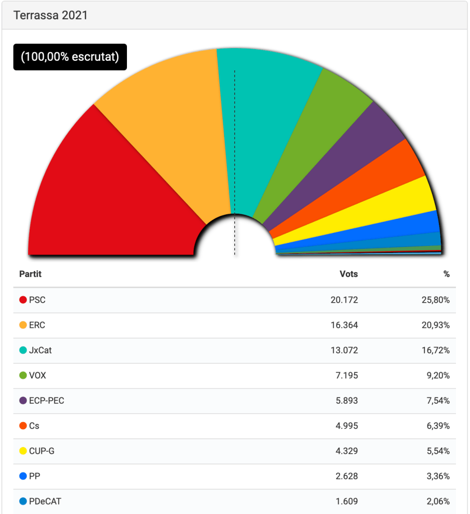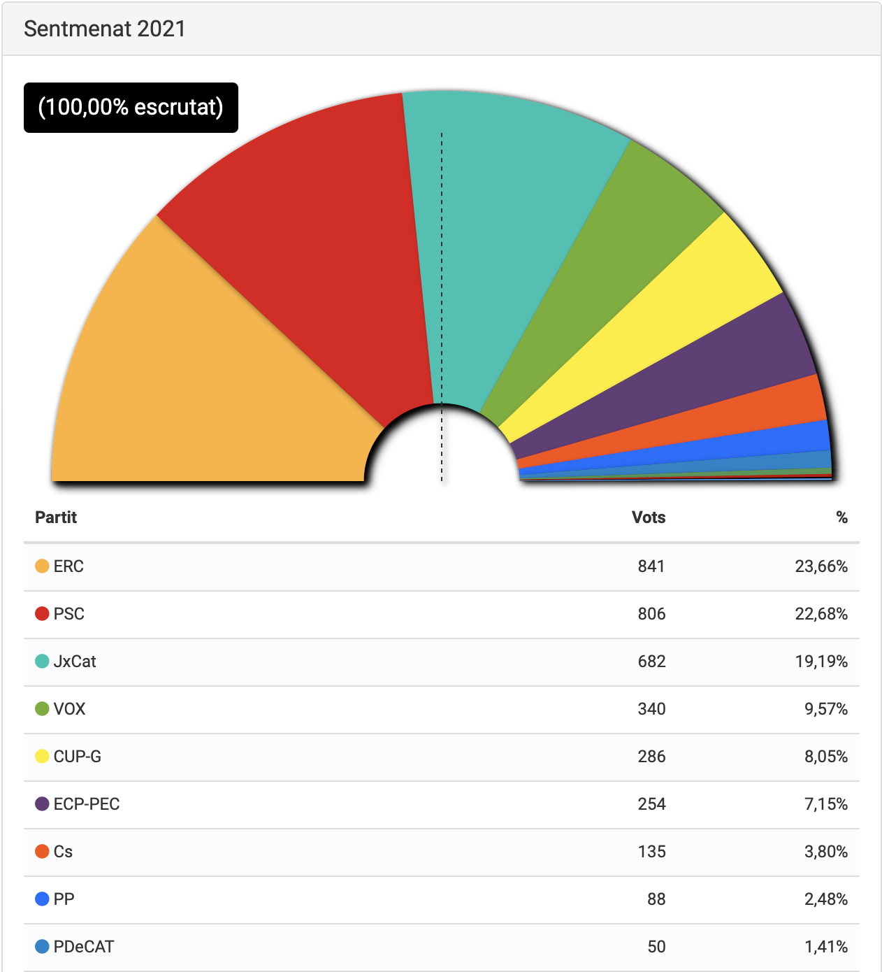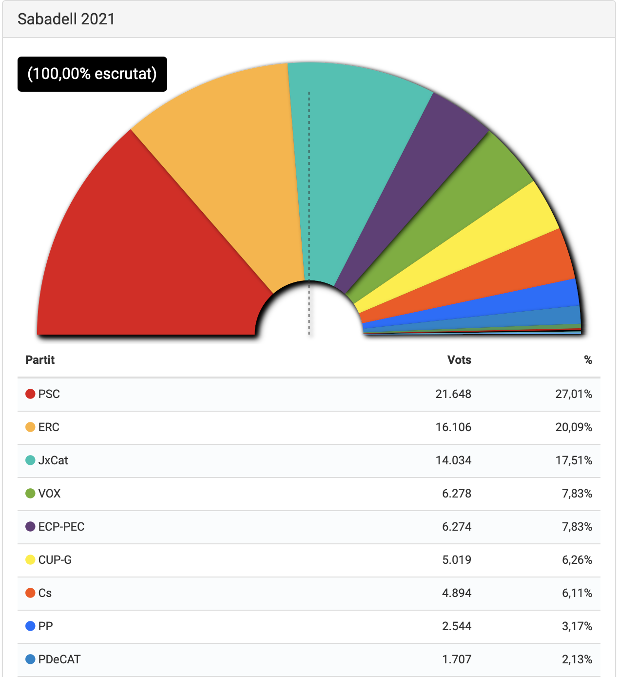 Aquest és el percentatge de vot a les diferents candidatures, a les eleccions del 14F de 2021 al Parlament de Catalunya, als municipis del Vallès Occidental.