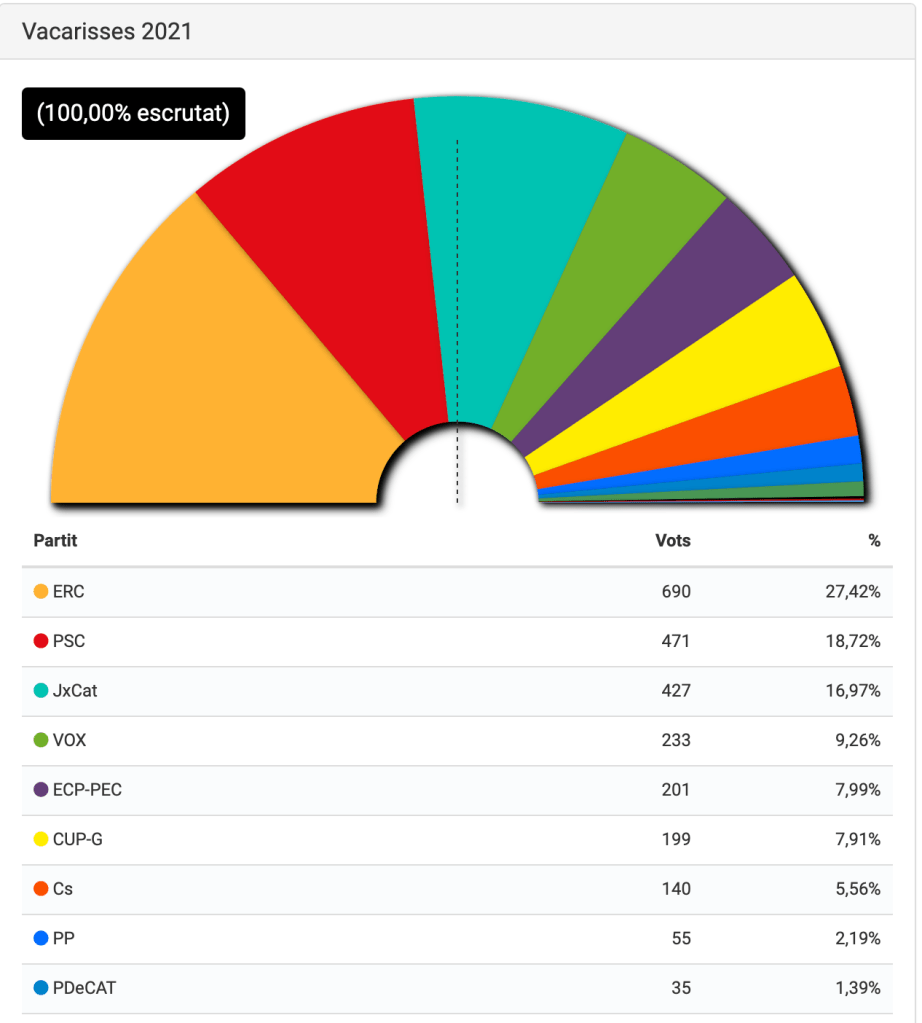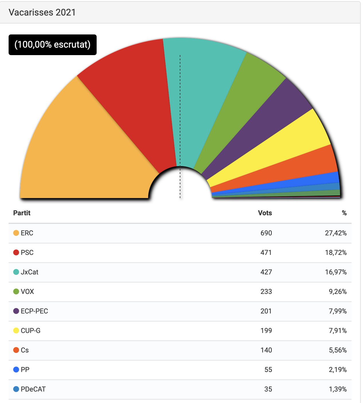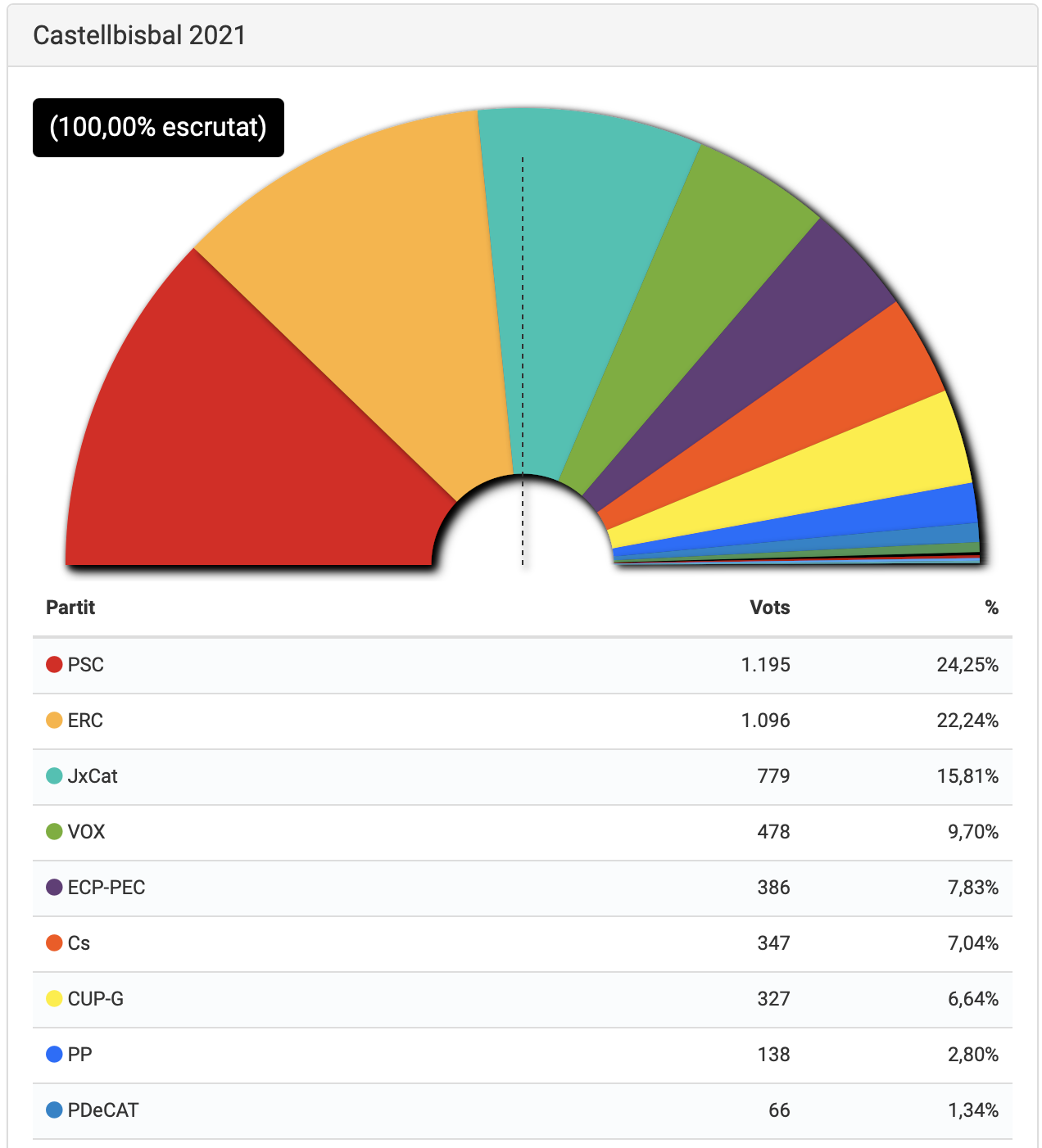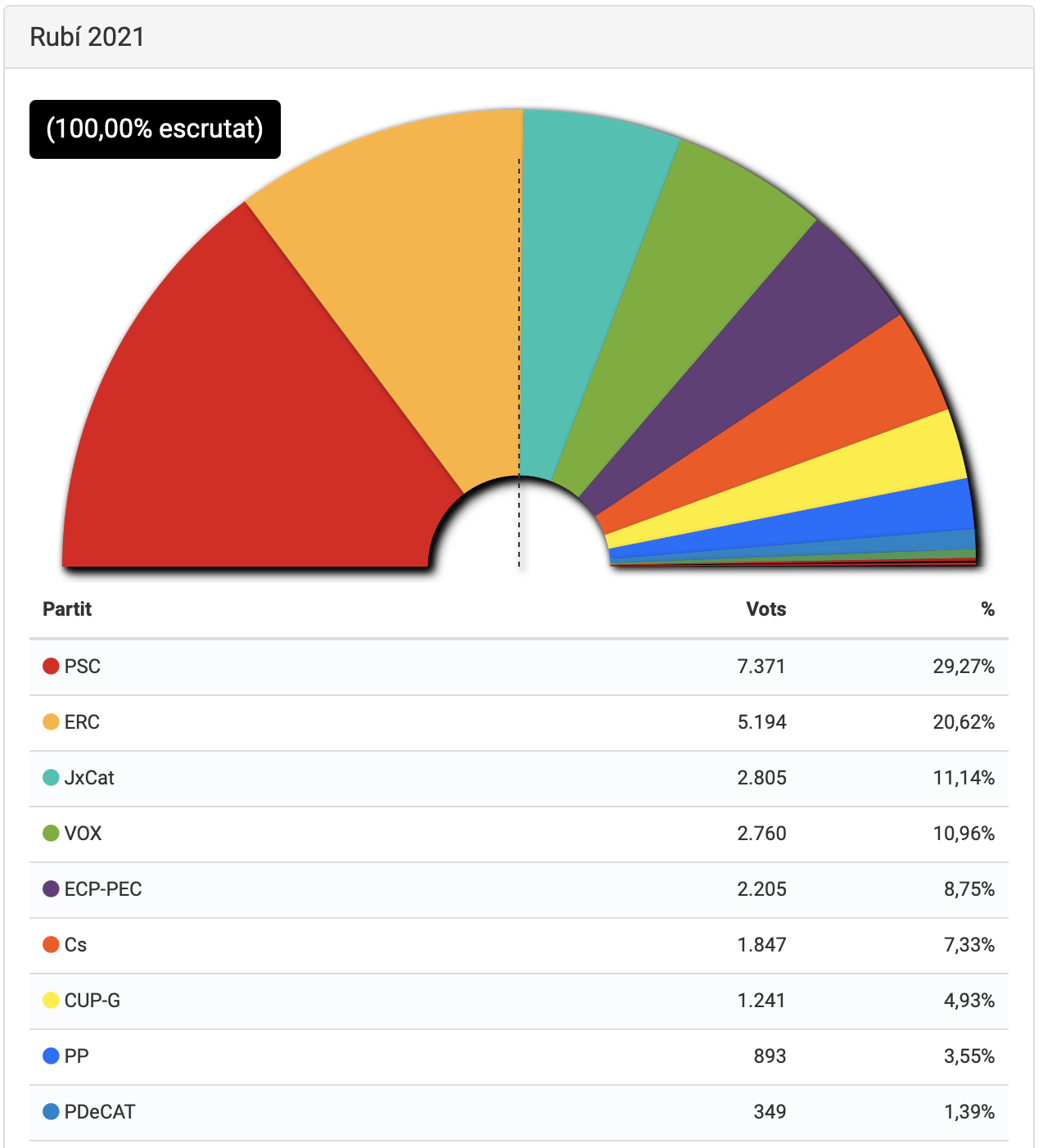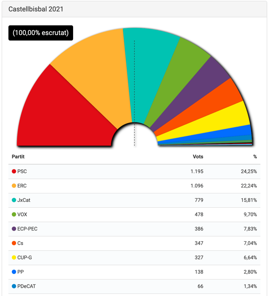 Aquest és el percentatge de vot a les diferents candidatures, a les eleccions del 14F de 2021 al Parlament de Catalunya, als municipis del Vallès Occidental.