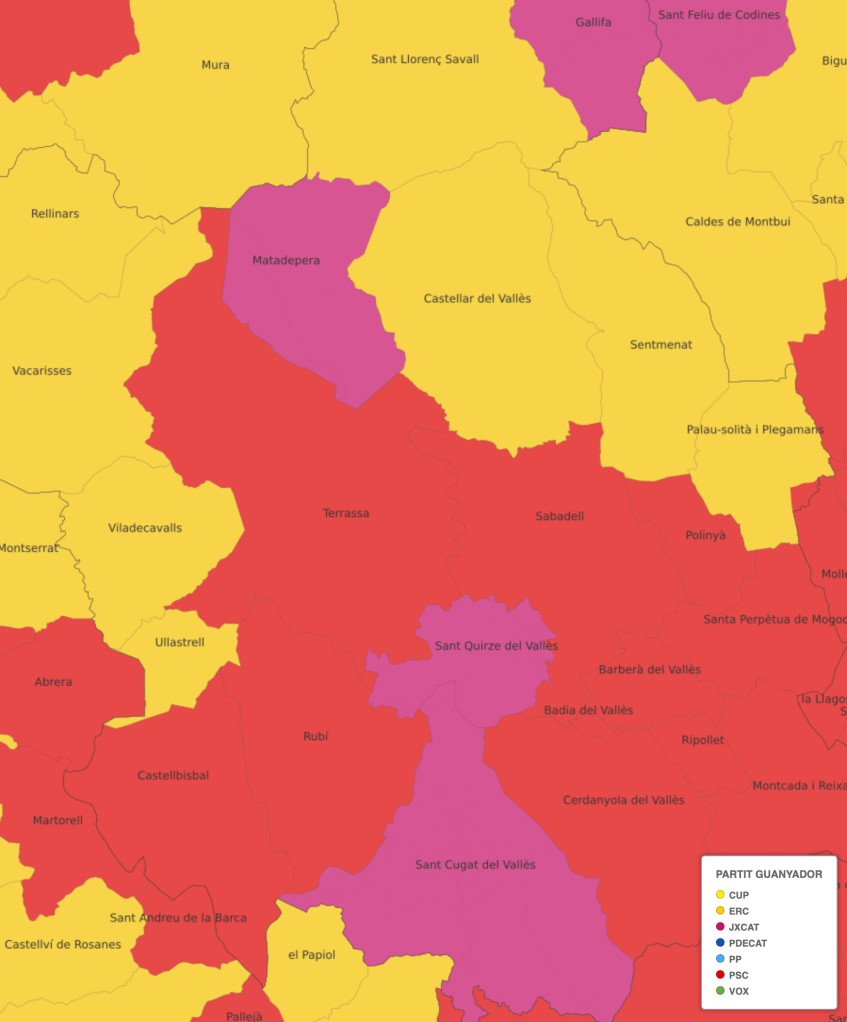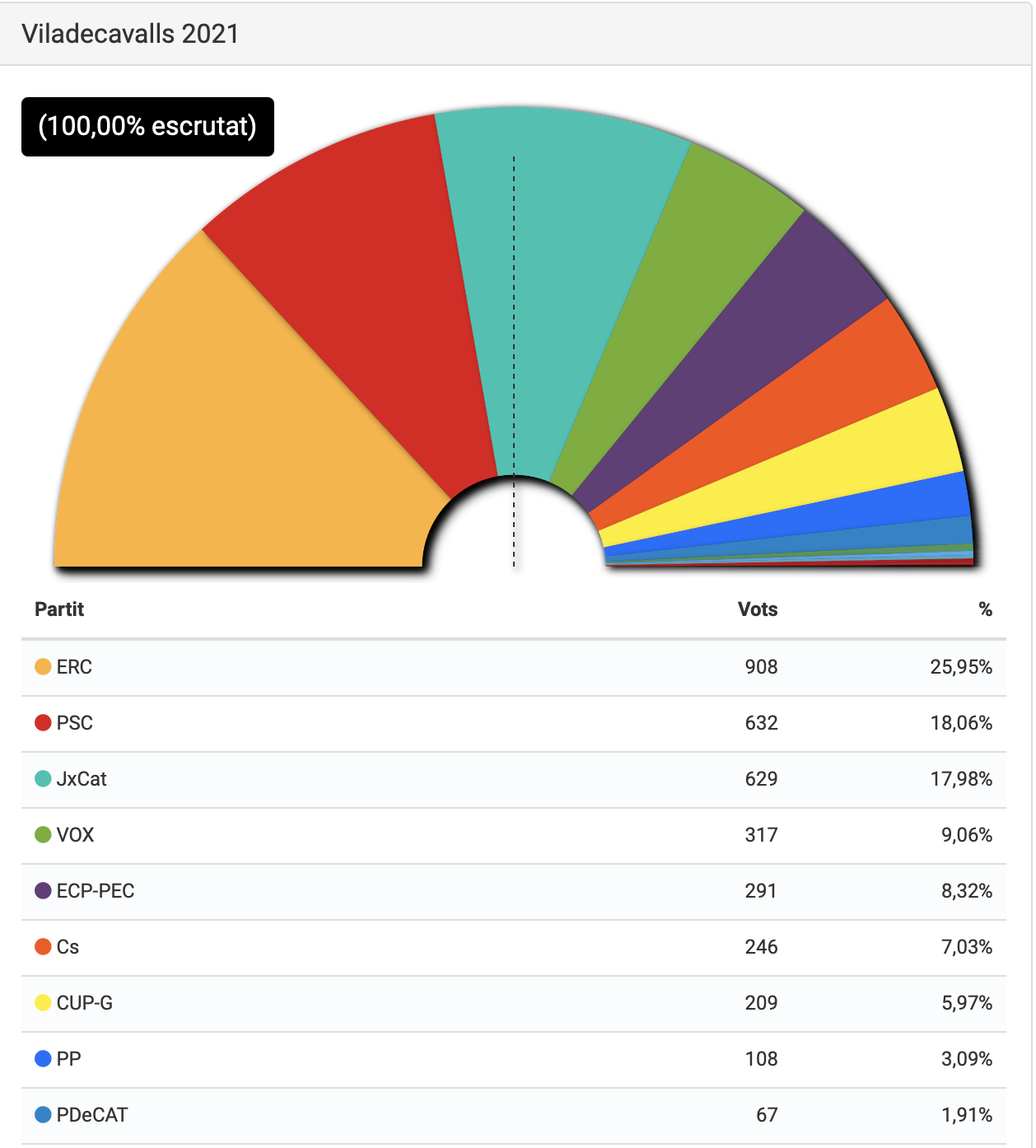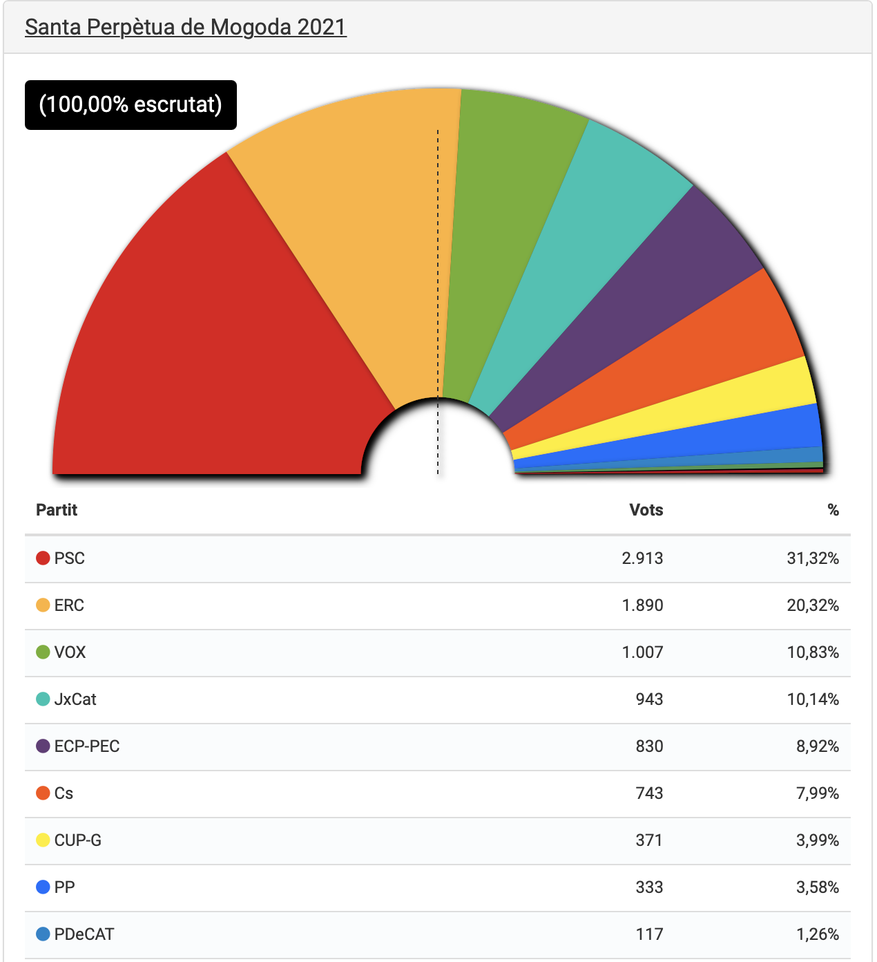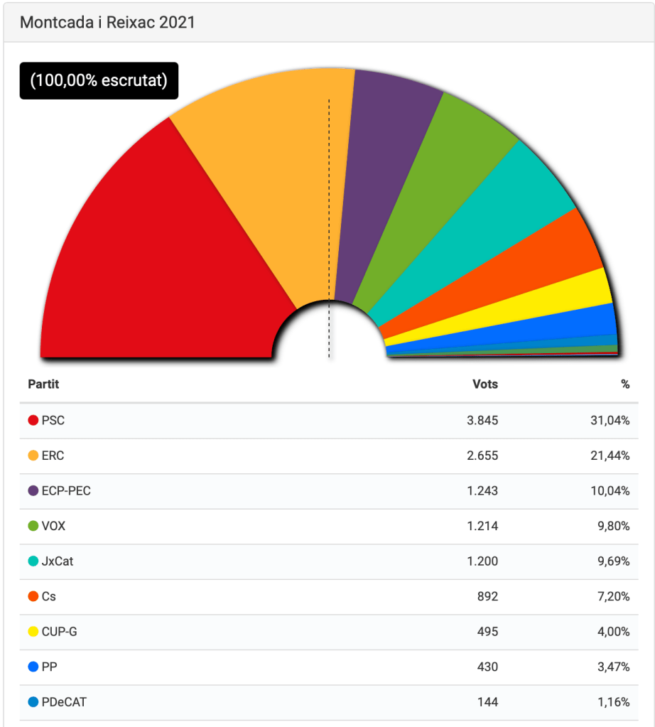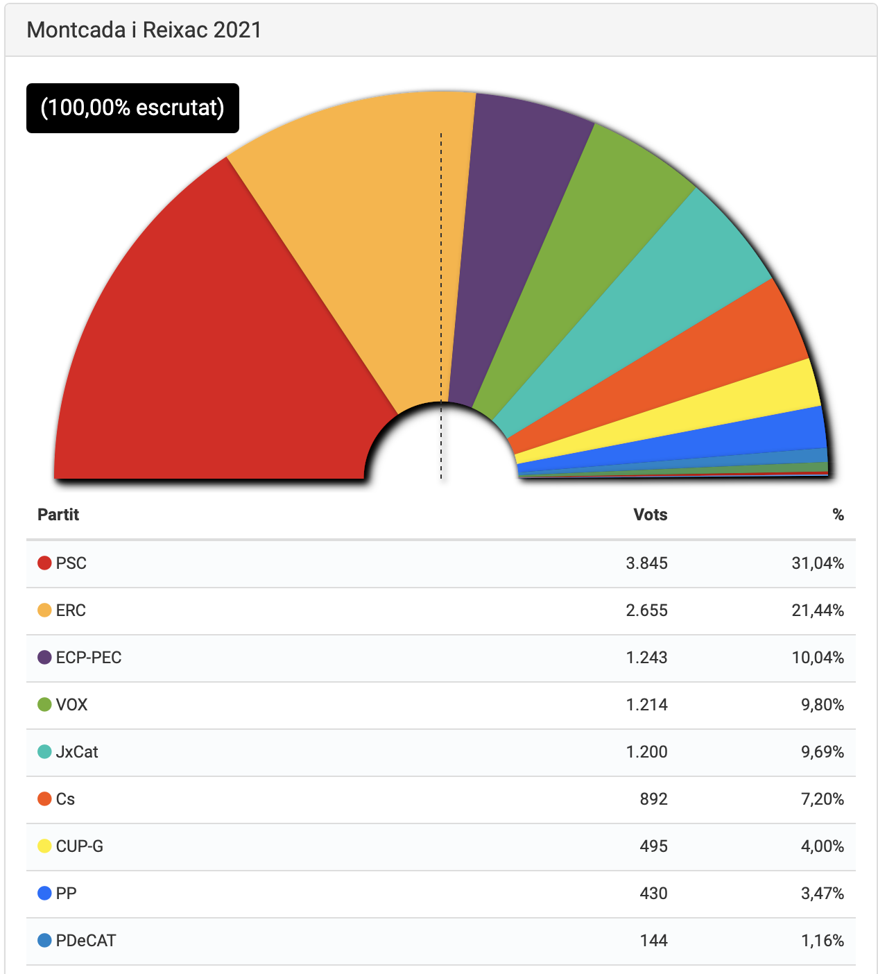 Aquest és el percentatge de vot a les diferents candidatures, a les eleccions del 14F de 2021 al Parlament de Catalunya, als municipis del Vallès Occidental.