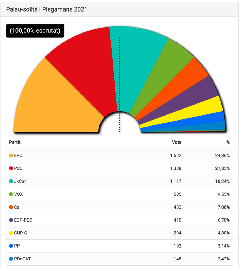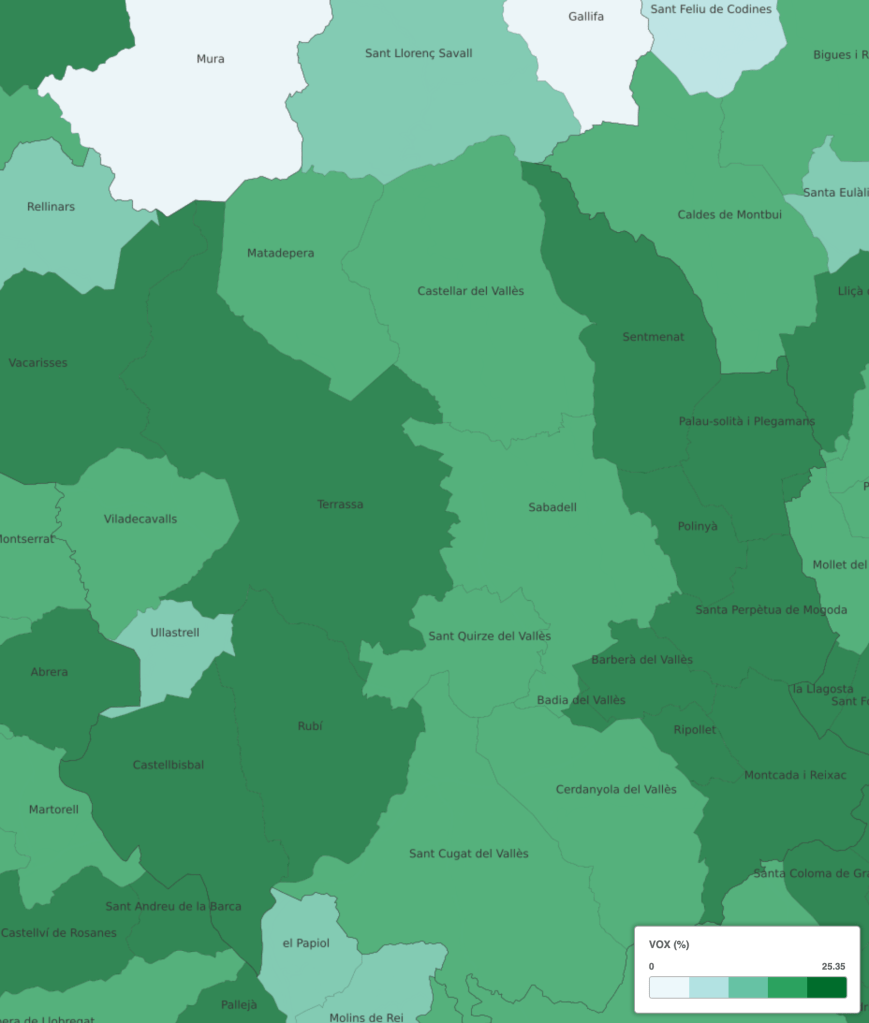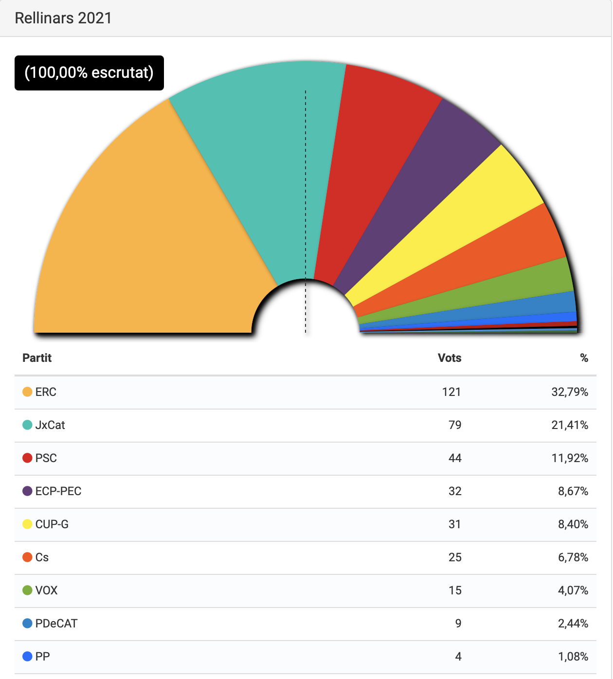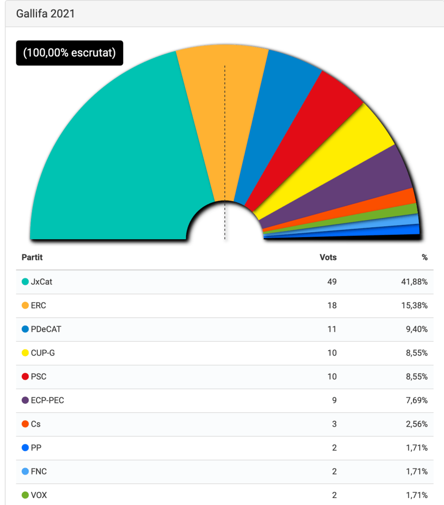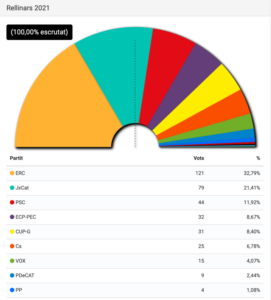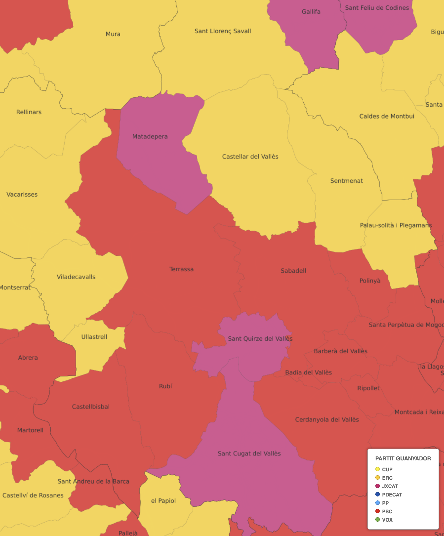 Aquest és el percentatge de vot a les diferents candidatures, a les eleccions del 14F de 2021 al Parlament de Catalunya, als municipis del Vallès Occidental.