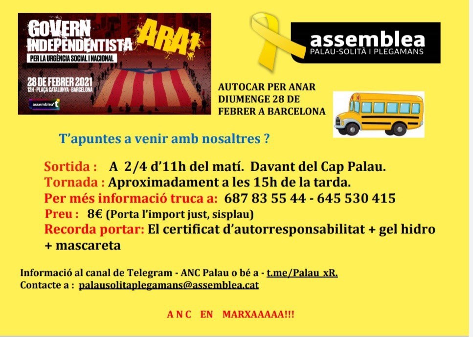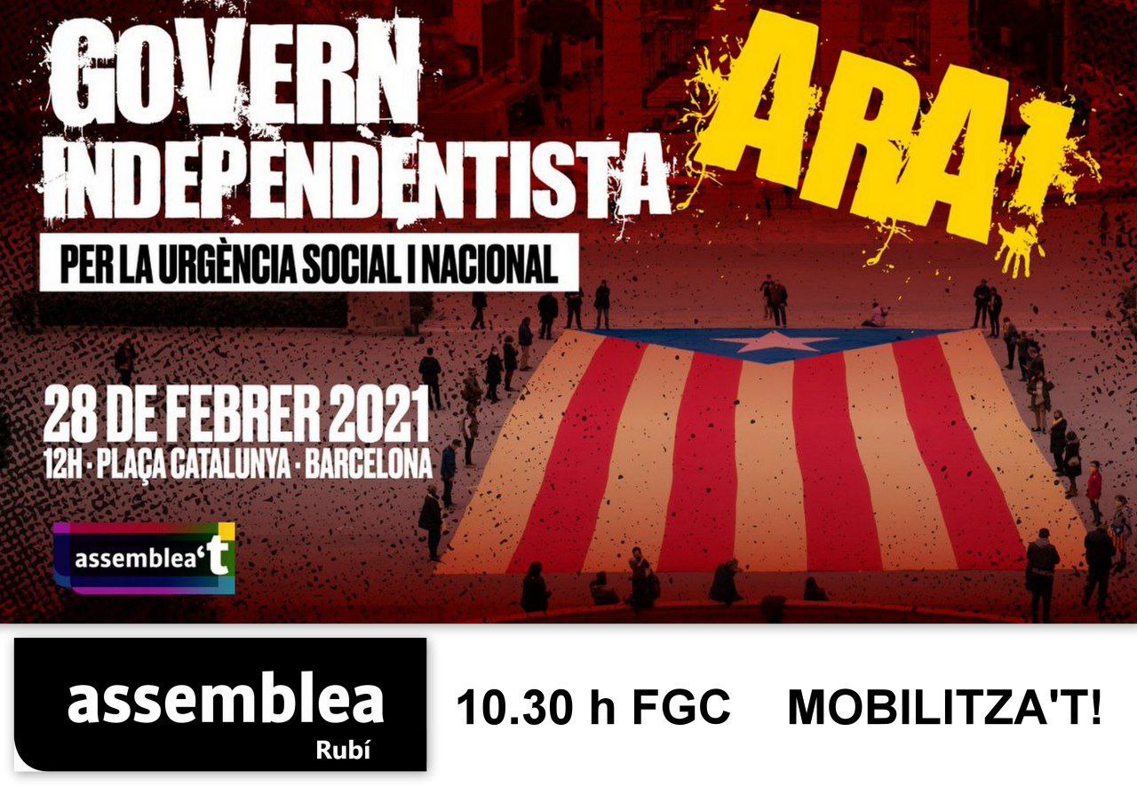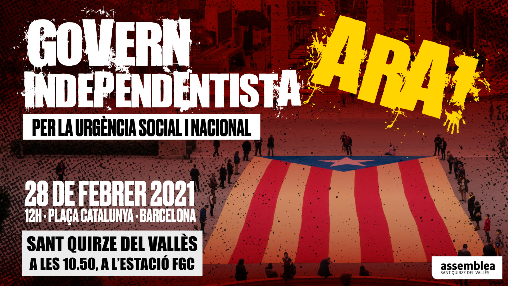 L’Assemblea Nacional Catalana convoca una mobilització el diumenge 28 de febrer a Barcelona sota el lema “Govern independentista, ara! Per la urgència social i nacional”. L’entitat vol reivindicar el 52% de vots independentistes aconseguits en aquestes eleccions i exigir un govern d’unitat independentista que faci passes determinades cap a la llibertat de Catalunya”.