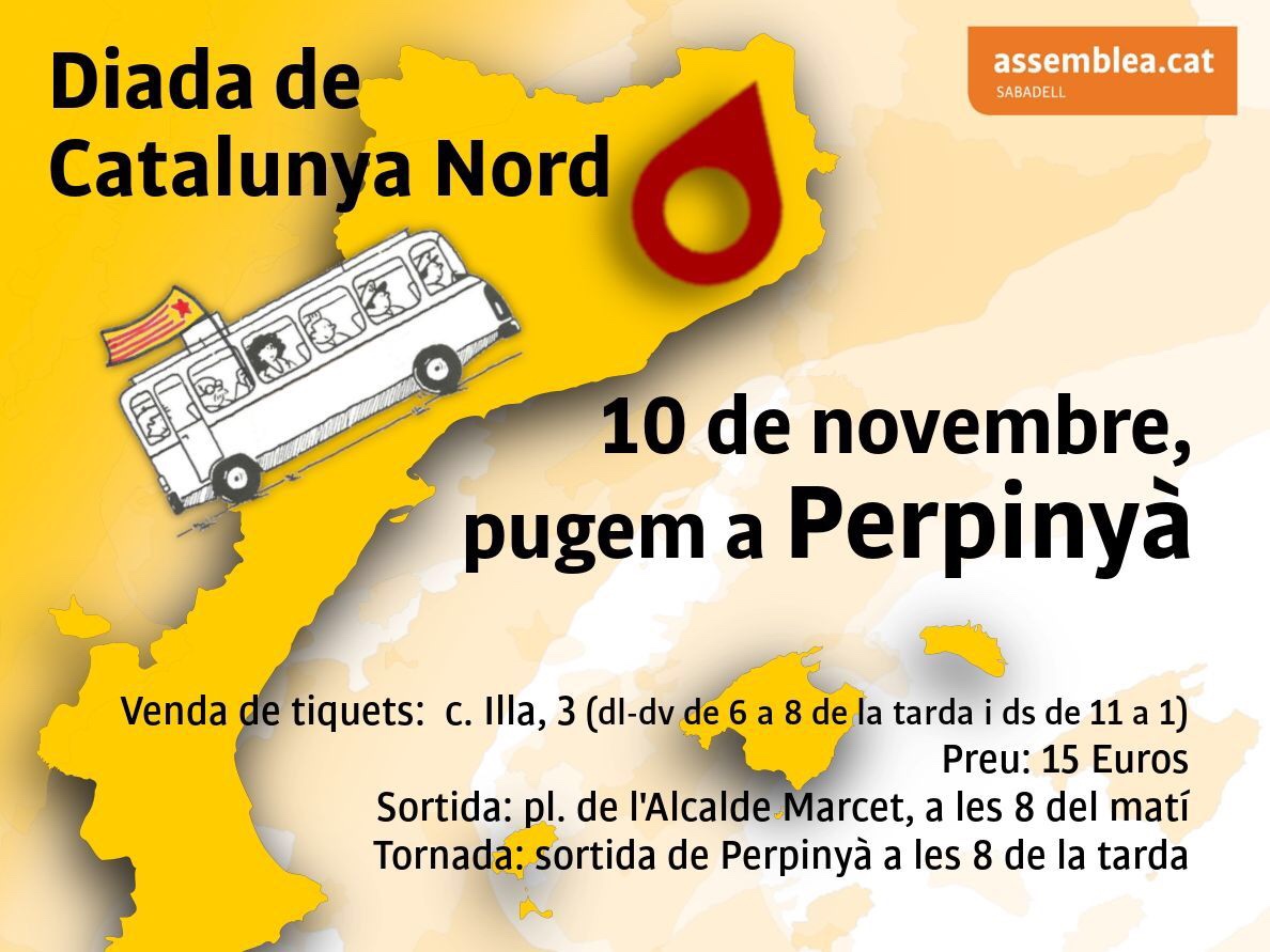 El dissabte 10 de novembre se celebra a Perpinyà la Diada de Catalunya Nord. S’estan organitzant autocars per anar-hi des de diferents punts dels Països Catalans.