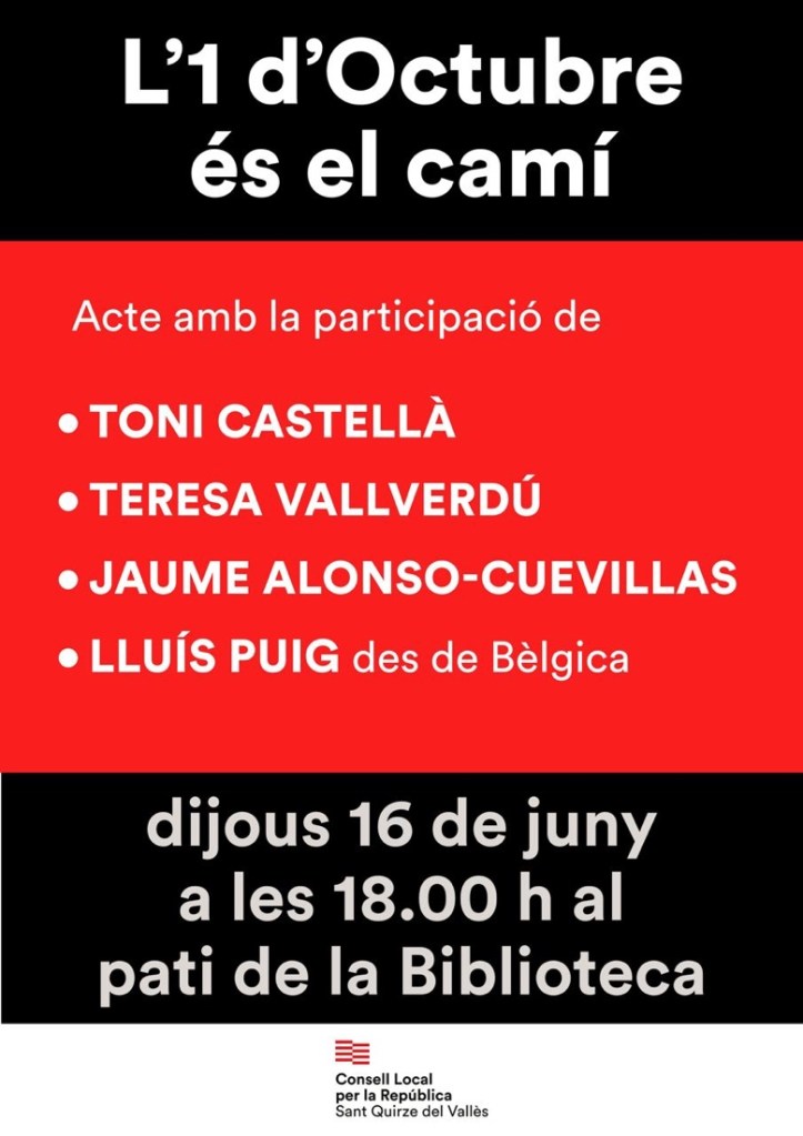 El dijous 16 de juny, a Sant Quirze del Vallès, es farà un acte organitzat pel Consell Local per la República, al pati de la Biblioteca, a les 18.00 h.
