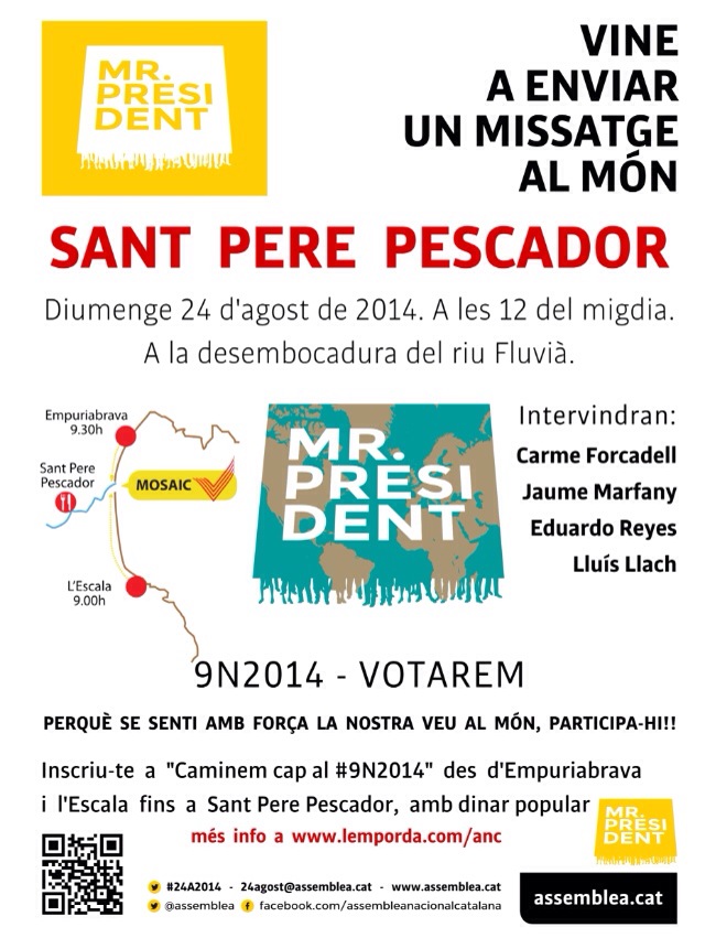 – La millor garantia que el 9N votarem és omplir els carrers el dia Onze de Setembre. La Via Catalana 2014 ha de ser la mobilització més important de la història del país; el pas definitiu cap a la llibertat. L’11/9 ens conduirà al 9/11.