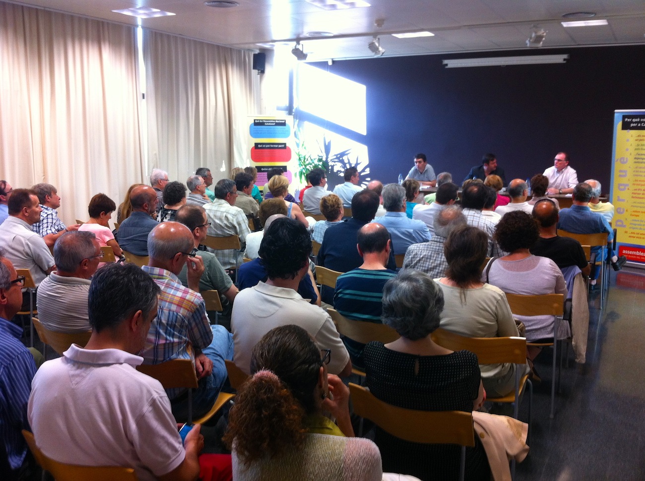 Una setantena de persones, algunes dretes per falta de cadires, van seguir l’exposició de dos dels autors més ben valorats de tots els que reflexionen sobre el procés d’autodeterminació. El moderador, el director de Nació Digital Salvador Cot, va destacar l’interès que tenen els llibres i les reflexions que exposen.