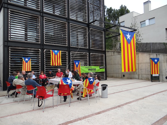L’entorn de la plaça de Maragall, s’ha ambientat amb banderes estelades i pancartes de la Marxa; tot això acompanyat d’un esmorzar de germanor.