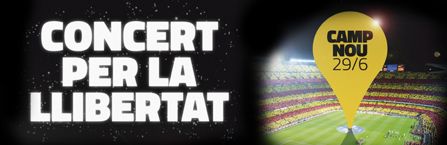El pròxim 29 de juny al Camp Nou es farà el Concert per la llibertat organitzat per Òmnium Cultural amb el suport de l’ANC i 12 entitats més.