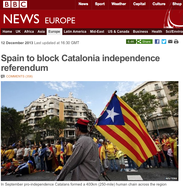 - BBC News: Catalans rally for independence referendum from Spain. Anteriorment la cadena britànica havia publicat la notícia ‘Catalan independence push faces big hurdles‘ i també una entrevista, dimecres, amb el president Artur Mas.