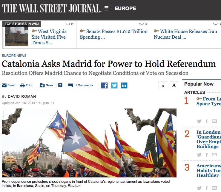 - The Wall Street Journal: Catalans Demand Right to Vote on Possible Independence from Spain