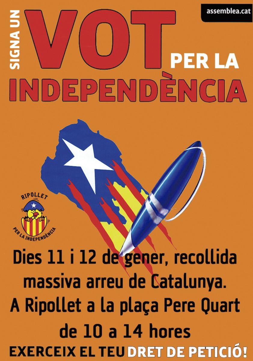 El passat 23 de novembre Ripollet per la Independència va organitzar una Xerrada-Col·loqui amb el Cercle Català de Negocis sota el títol Avantatges i inconvenients amb un estat propi. L’acte va tenir lloc a la sala d’actes del centre cultural, van intervenir en Josep Conejos i Francesc Gimenez i van parlar sobre la vessant econòmica i empresarial de la Independència.