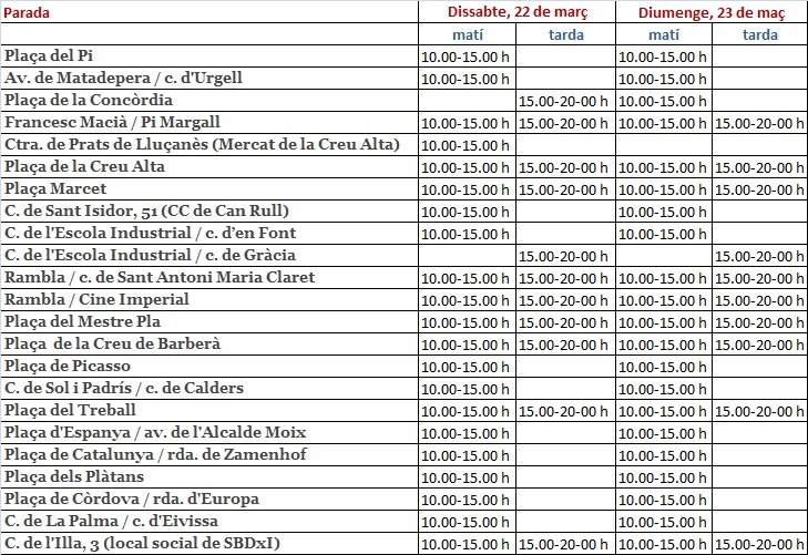 A Sabadell, tindrem parada de recollida de signatures als llocs i horaris següents: