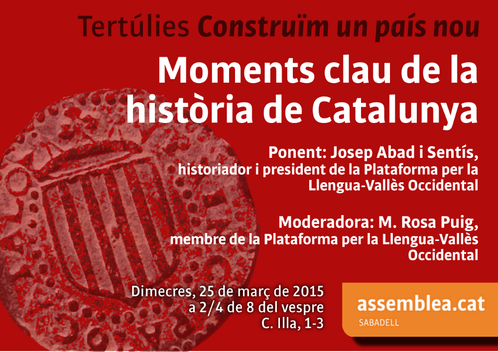 El 25 de març, a Sabadell, tertúlia sobre “Moments clau de la història de Catalunya”