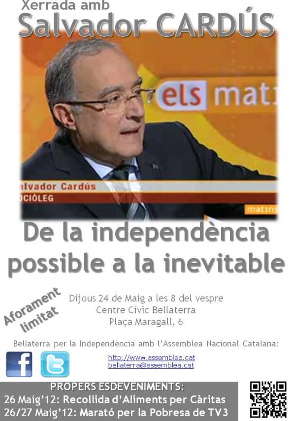 Amb el títol De la independència possible a la inevitable Salvador Cardús tractarà l’evolució del projecte independentista a Catalunya. Serà el pròxim dijous 24 de maig a les 20:00 al Centre Cívic de Bellaterra (pl. Maragall 6).