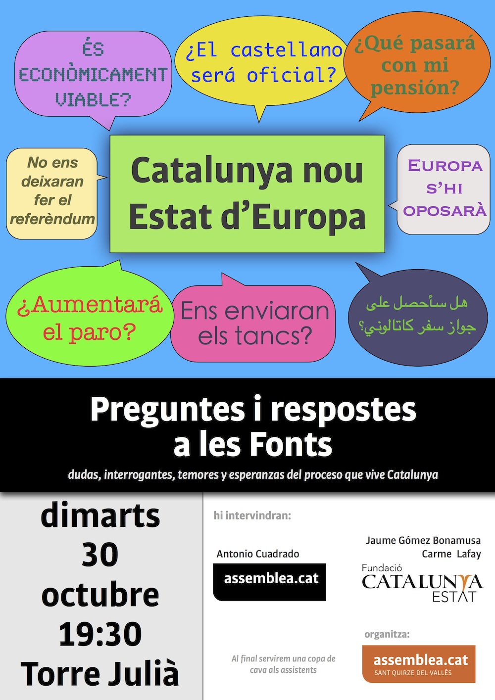30 octubre a les Fonts “Preguntes i respostes” sobre el futur Estat català